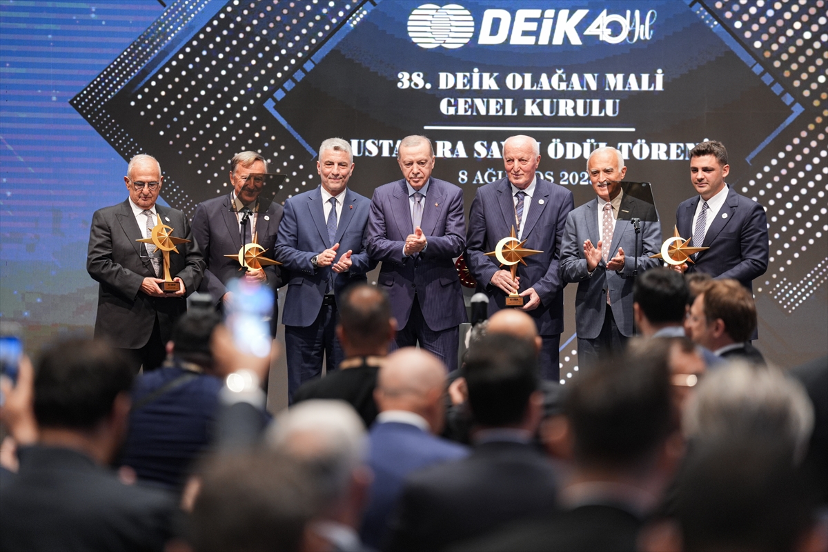 Dış Ekonomik İlişkiler Kurulu (DEİK) 38. Olağan Mali Genel Kurulu ve Ustalara Saygı Ödül Töreni Programı'nda konuşan Erdoğan, katılımcılarla birlikte olmaktan, 40'ıncı yıl heyecanını paylaşmaktan büyük memnuniyet duyduğunu belirterek, genel kurulun ülke, millet ve ülke ekonomisi için hayırlara vesile olmasını diledi.