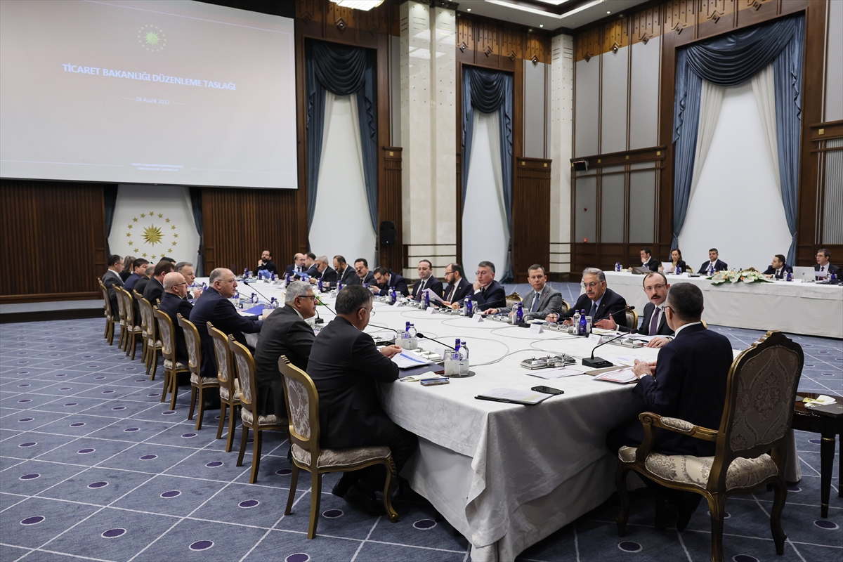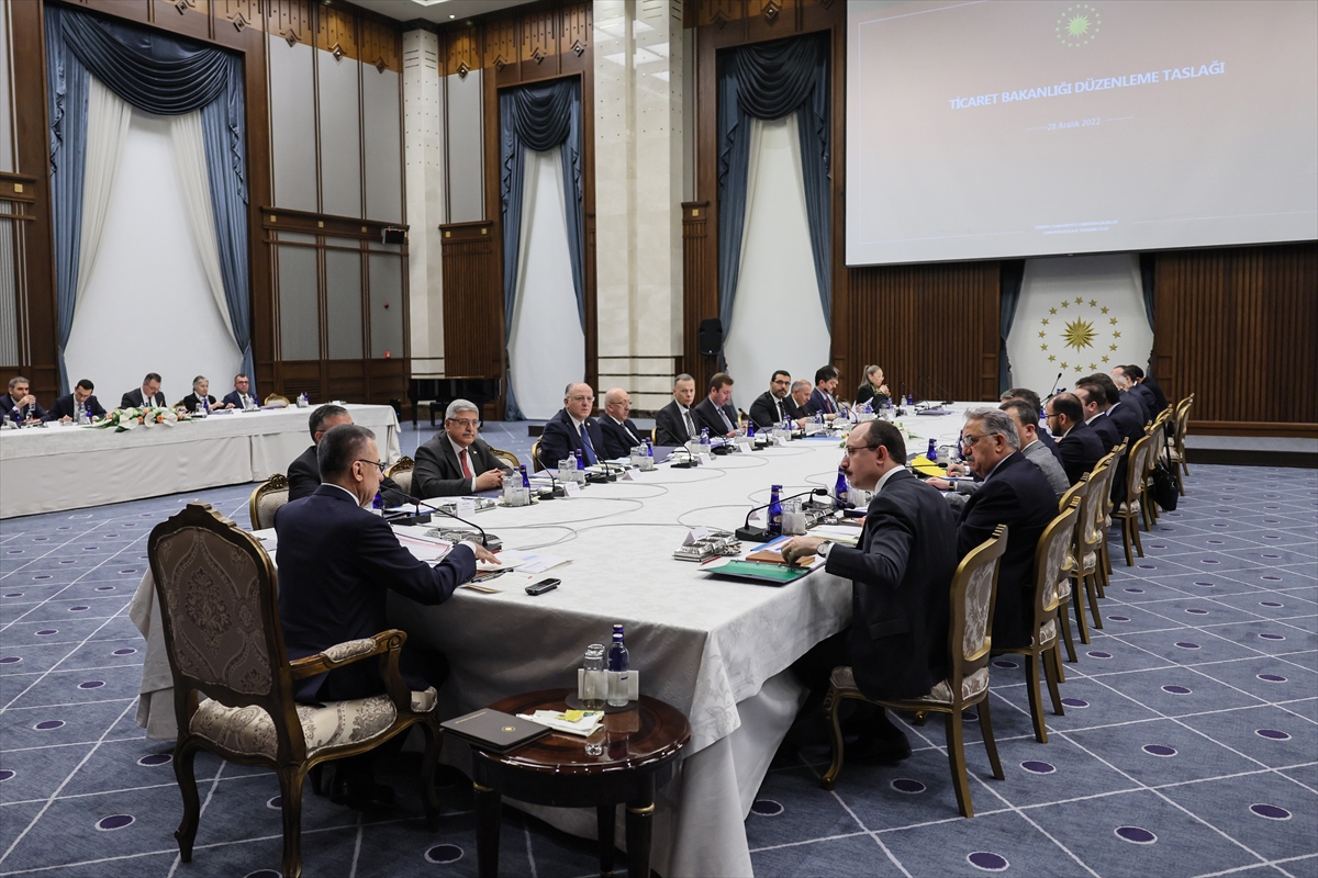 Cumhurbaşkanlığı Külliyesi'ndeki toplantıda, haksız ticari uygulamaların belirlenmesi ve yasaklanması, üretim tarihinden itibaren 30 gün içinde bozulabilen tarım ve gıda ürünleri için özel ödeme kuralları getirilmesi, esnaf ve sanatkarlar meslek kuruluşlarında, kuruluş için gerekli kurucu oda sayısı alt sınırına ve bu kuruluşlardaki olağanüstü genel kurul toplantıları için gereken koşullara dair yeni düzenleme önerileri gibi konular kapsamlı olarak ele alındı.