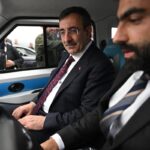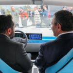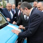 Yılmaz, talep üzerine araçlardan birine imza attı, sonra test sürüşüne katıldı.
