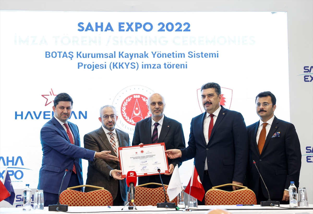 SAHA EXPO'da, SSB, HAVELSAN ve BOTAŞ arasındaki "BOTAŞ Kurumsal Kaynak Yönetim Sistemi Projesi"nin imza töreni de gerçekleştirildi. Törene, SSB Başkan Yardımcısı Mustafa Murat Şeker, HAVELSAN Genel Müdürü Mehmet Akif Nacar, BOTAŞ Genel Müdür Yardımcısı Talha Pamukçu ve ilgili kurumların yöneticileri katıldı.