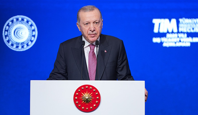 Dış ticaret rakamlarına değinen Erdoğan, “Dış ticaret rakamlarımızın objektif analizini yaparken şu noktanın göz ardı edilmemesi gerektiği kanaatindeyim. 2025 yılı küresel ticarette belirsizliklerin tırmandığı ve korumacılığın belirgin biçimde yükseldiği bir dönem olmuştur. Zayıf dış talep, yakın coğrafyamızda süre gelen savaşlar, iç karışıklıklar ve jeopolitik gerilimlere, tarife artışlarının yol açtığı sorunlar eklenmiştir. Türkiye tüm bunlara ilave olarak dolaylı maliyeti 150 milyar doları bulan 6 Şubat depremlerinin etkileriyle de mücadele etmiştir. Şunu burada büyük bir gururla söylemek isterim, dünyada pek az ülkenin altından kalkabileceği bu sınamaların üstesinden alnımızın akıyla geldik.” diye konuştu.