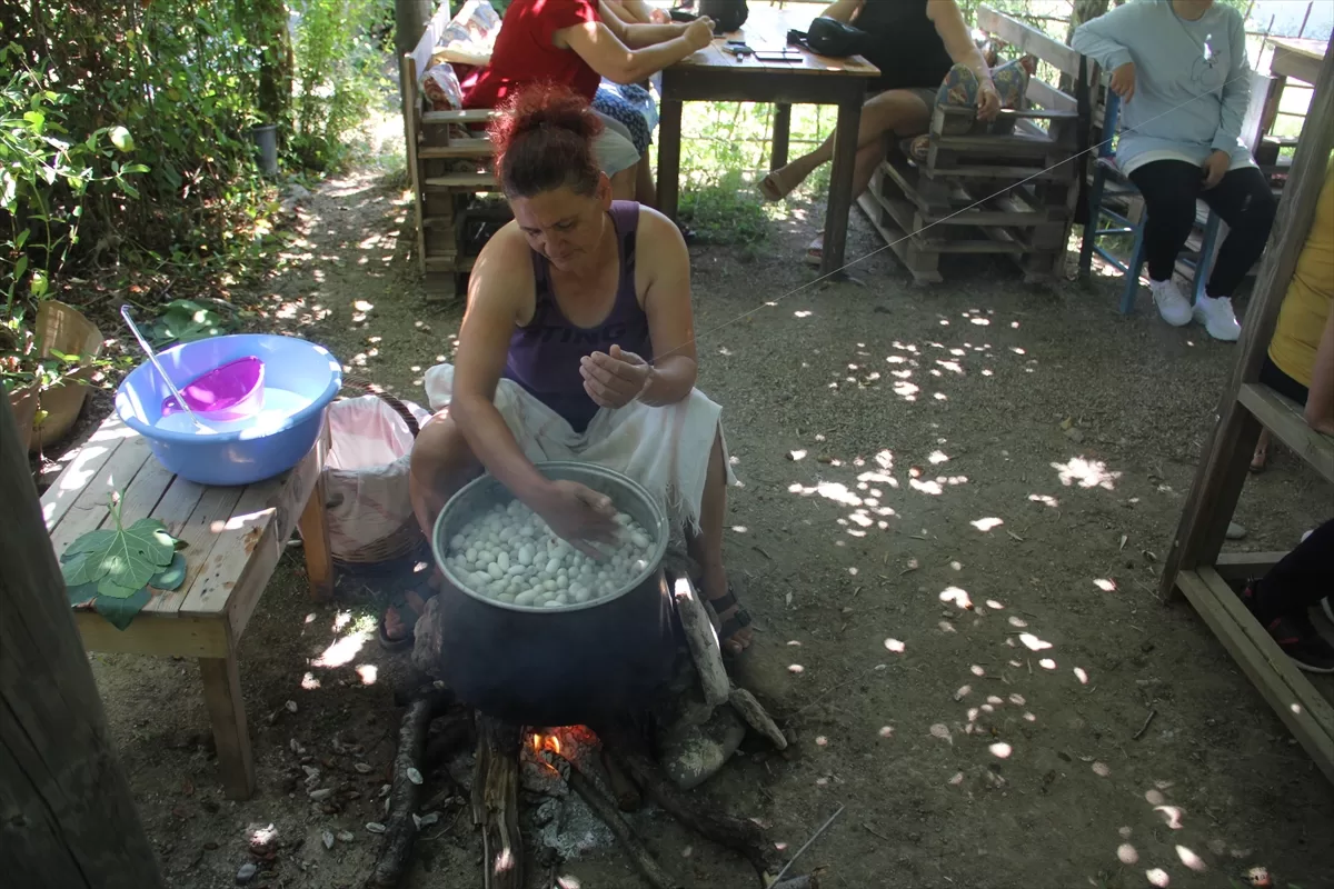 MUĞLA (AA) – Muğla'nın Datça ilçesinde kadın girişimci, evin bahçesinde ipek böceği yetiştirip atölyesinde yaptığı ipek dokumayla unutulmaya yüz tutan geleneği sürdürüyor.