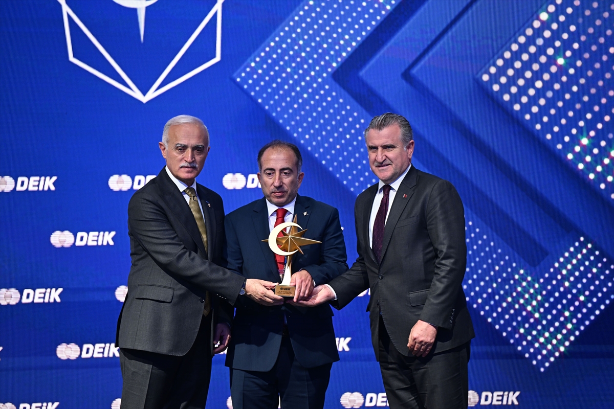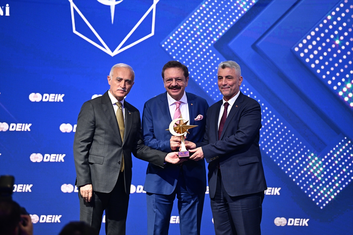 Üçüncü usta ödülünün takdimini Sanayi ve Teknoloji Bakanı Fatih Kacır ve DEİK Başkanı Nail Olpak gerçekleştirdi.