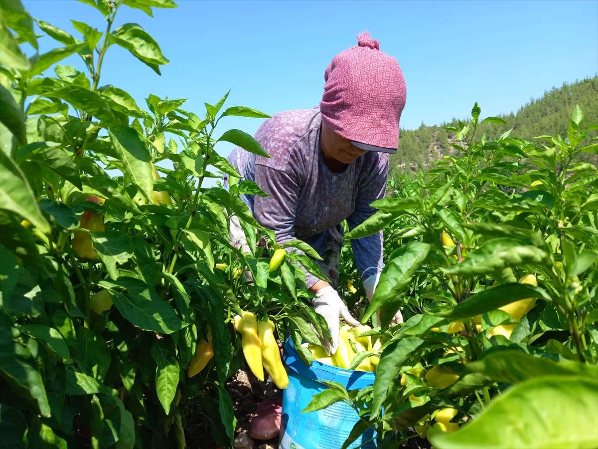DENİZLİ (AA) – Türkiye'nin coğrafi işaret tescilli ürünleri arasında yer alan sofralık Kale biberi hasat ediliyor.