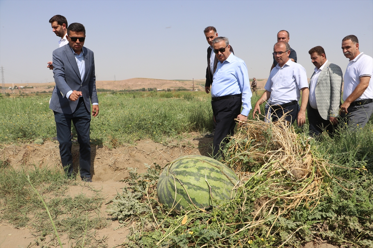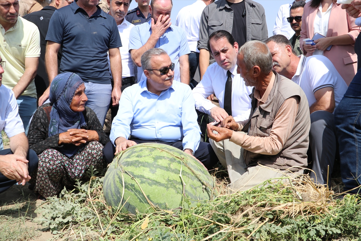 Vali Ali İhsan Su, Bismil ilçesine bağlı kırsal Mirzabey Mahallesi'nde çiftçi Hamit ve İkram Atlı'nın tarlasında düzenlenen "Karpuz Hasadı Tarla Günü" etkinliğine katıldı, yetiştirilen karpuzları inceledi.