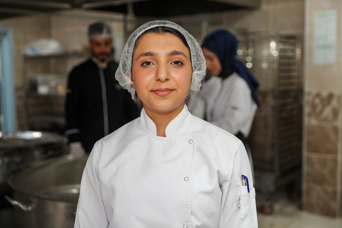 "Bizler akşam yapılan yemeğin ön hazırlığını yapıyoruz. Arkadaşlarımla gelir elde ediyoruz. Bu gelir eğitimimize de katkı sağlıyor. Önce yemek listemiz hazırlanıyor, sonra malzemelerimizin temizliğini ve ayıklamasını yapıyoruz. Burada haftada 3 gün staj yapıyoruz. Hedefim kendi alanımda üniversite okumak. Mezun olduktan sonra beceri eğitimi sınavına gireceğiz ve usta öğreticilik belgesi aldıktan sonra iş yerimizi açma gibi bir avantajımız olacak."