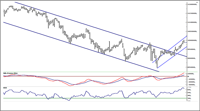 MOMENTUM: Göstergede 100 referans çizgisi olarak alınır. Göstergenin referans çizgisinin altında harekete başlaması “SAT”, referans çizgisinin üzerine çıkması “AL” sinyali olarak değerlendirilir. Momentumun aşırı satış bölgesinden dönüş eğiliminde olması kısa vadede düşüşün tamamlandığını, momentumun belirli bir tepe yapıp aşağı doğru dönmesi, fiyatlardaki artış hızının yavaşladığını ve fiyatların bir süre sonra gerilemeye başlayacağını gösterir. Gösterge 115 çizgisinin üzerindeyken aşırı alım bölgesinde, 85 çizgisinin altındayken aşırı satım bölgesinde olarak yorumlanır.