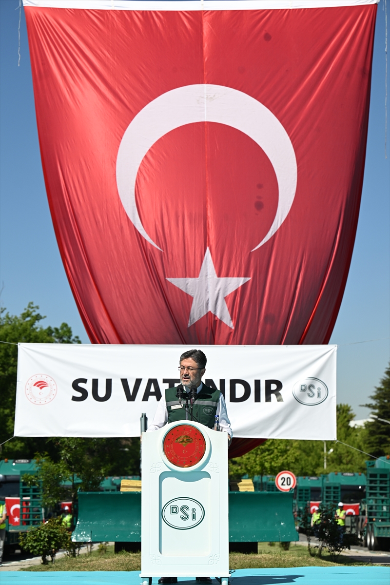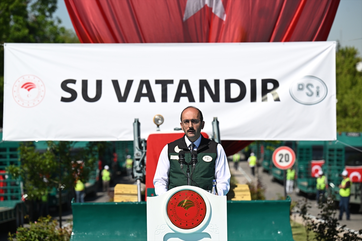 "570 iş makinesini DSİ makine parkına kazandırdık. Kalan 130 dozeri de bu yıl içinde teslim alacağız. 2024 ve 2025 yıllarında, 100 treylerin alımını planlamıştık. Yaklaşık 1,7 milyar lira bedelle gerçekleştirilen bu alım çerçevesinde 75 aracımız geçen yıl bölgelere gönderilmişti. Bugün de 25 treyler çekicisinin teslimatını yapıyoruz. Bugün, DSİ makine parkına ilk kez kazandırılacak iki yüzer paletli amfibik ekskavatörü de teslim alıyoruz. Bu da özellikle taşkın hadiselerinde çok önemli görevler görecek. Bu tür makineleri parkımıza katmaya devam edeceğiz. Araçlar DSİ'nin kabiliyetini sahada daha çok artıracak. Bu özel iş makineleri, su yollarının ve nehir deltalarının derinleştirilmesi, nehir, göl, baraj, sahil şeridi bakımı ve temizliklerini yerine getirmekte kullanılacak."