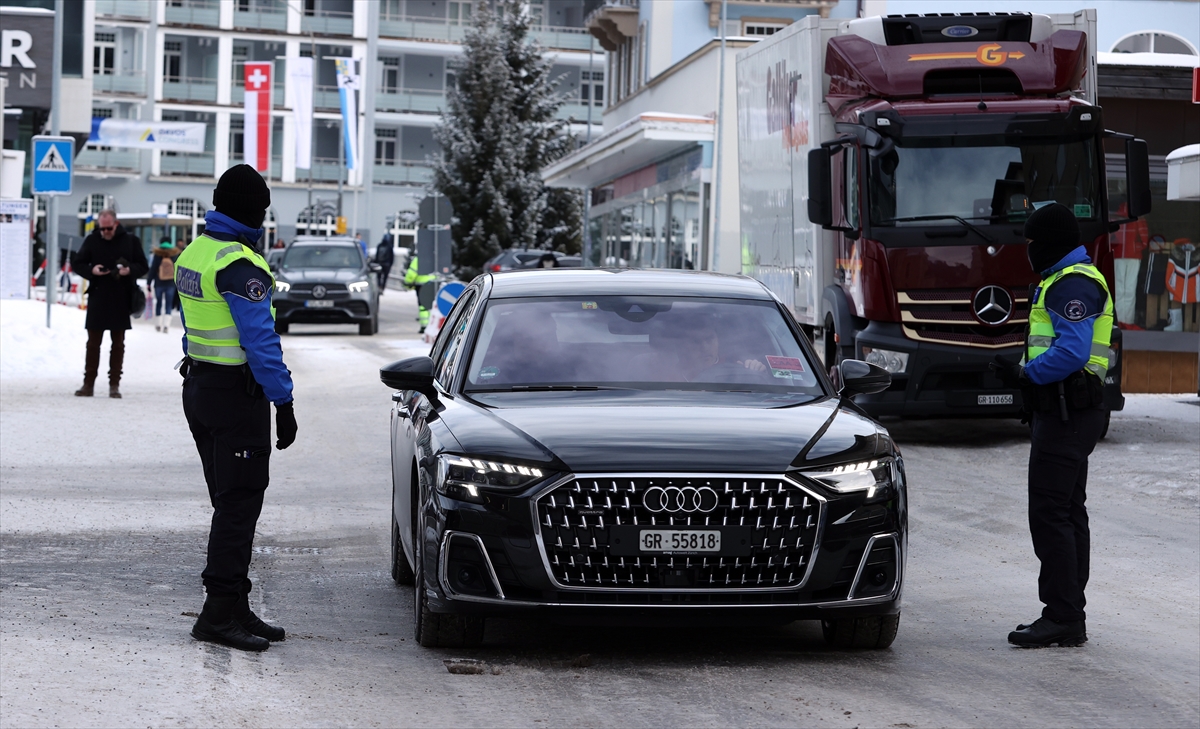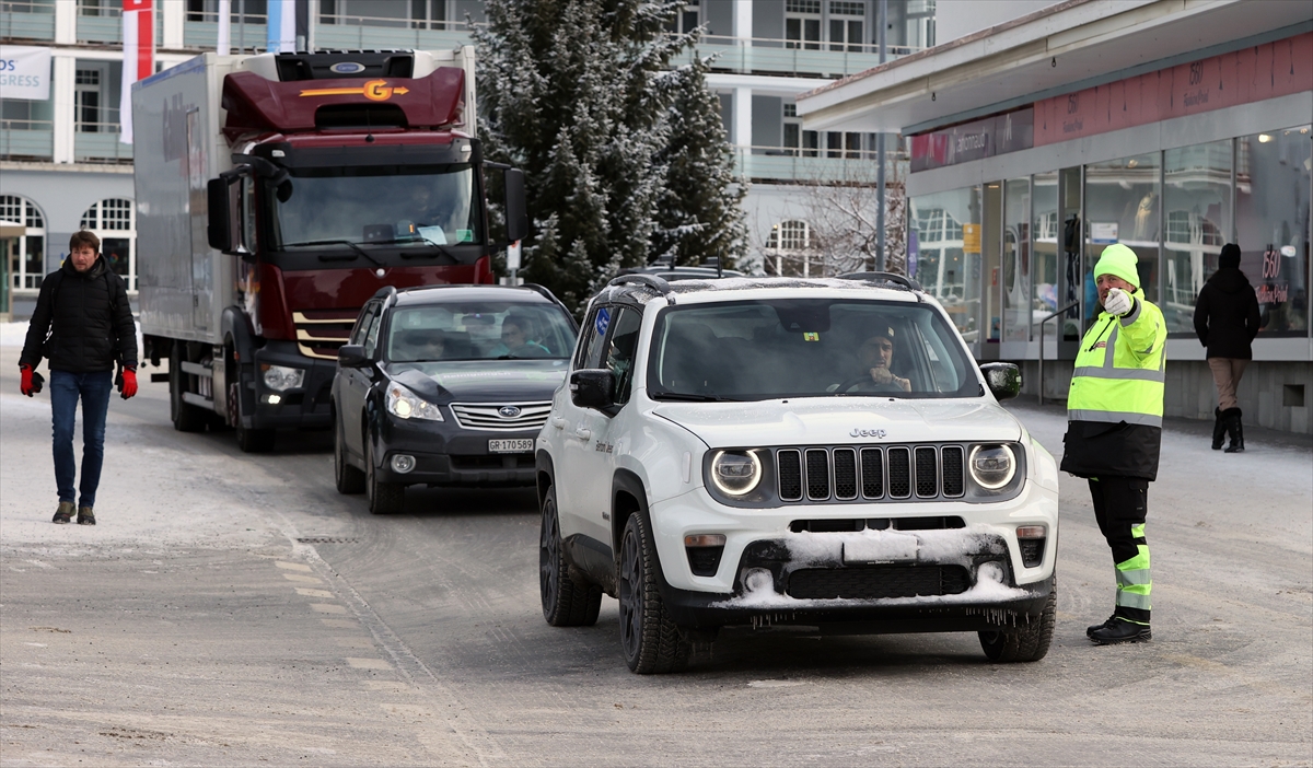 İsviçre kolluk kuvvetlerinin Davos'un girişinde oluşturduğu kontrol noktaları, kasaba girişinde araç kuyruklarının oluşmasına neden oldu.