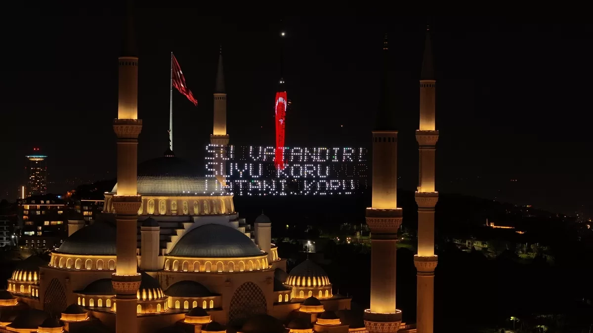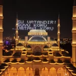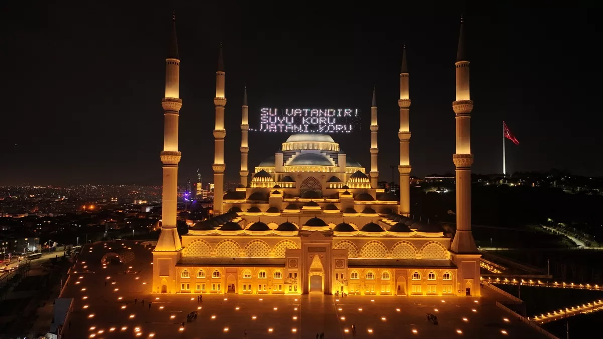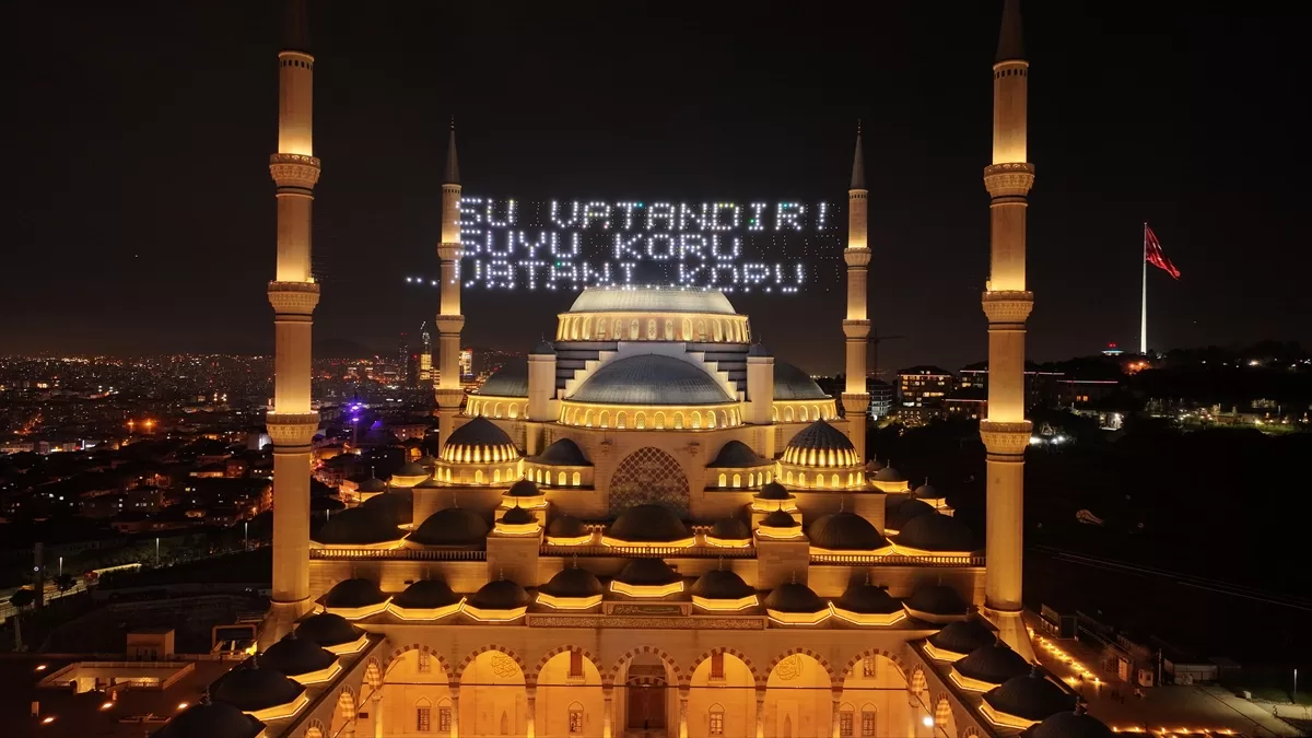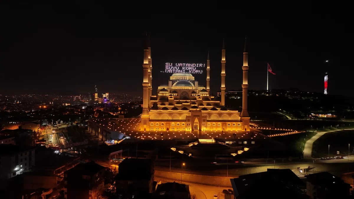 Büyük Çamlıca Camisi'ne "Su Vatandır! Suyu Koru, Vatanı Koru" yazılı mahya asıldı.