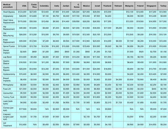 Amerika merkezli Dünya Medikal Turizm Derneği, Afrika, Asya, Amerika, Ortadoğu ve Avrupa’yı kapsayan 41 farklı ülkede yaptığı araştırma sonucunu ‘2015-2017 Medikal Turizm İndex’raporunda açıkladı. Bu raporda hastaların tedavi olmak için öncelikli tercih ettiği ülkelerin başında Kanada geliyor. Bu ülkeyi İngiltere, İsrail ve Kosta Rika ülkeleri takip ediyor. Yani bu ülkeler, ilk 5’te yer alıyor.