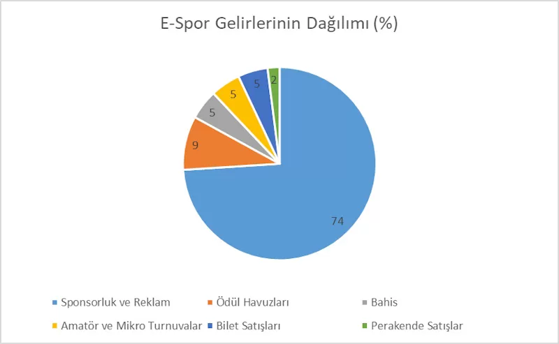 Yüksek izleyici kitlesi sponsorluk ve reklam gelirlerini artırıyor. Ödül havuzları, oyuncu ödülleri, transferler, eğitim gelirleri, bilet satışları, lisanslı ürün satışları, bu sektörün diğer önemli gelir kalemlerini oluşturuyor. Büyüyen e-spor ekonomisi, şirketlerin ve markaların e-spor takımlarına yatırım yapmasını ve sponsorluk anlaşmalarını teşvik ediyor. Sektör finansal büyümesini halen sürdürüyor.