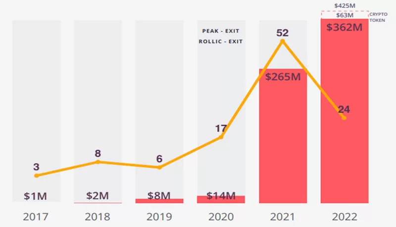 Statups.watch verilerine göre Türkiye’de oyun endüstrisi 2021 yılı ile birlikte önemli bir yatırım potansiyeli taşımaya başladı. 2022 yılında adet olarak azalsa da hacim olarak yüksek oranda yatırım almaya devam etti.