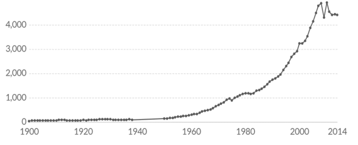 Yıl Bazında Dünya Ticareti (Milyar USD) (www.ourworldindata.org, 2019)