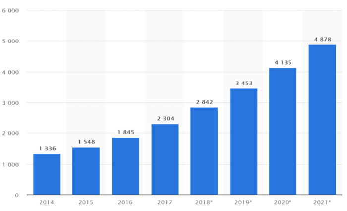 Kaynak: https://www.statista.com/statistics/379046/worldwide-retail-e-commerce-sales/