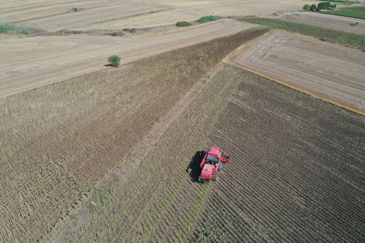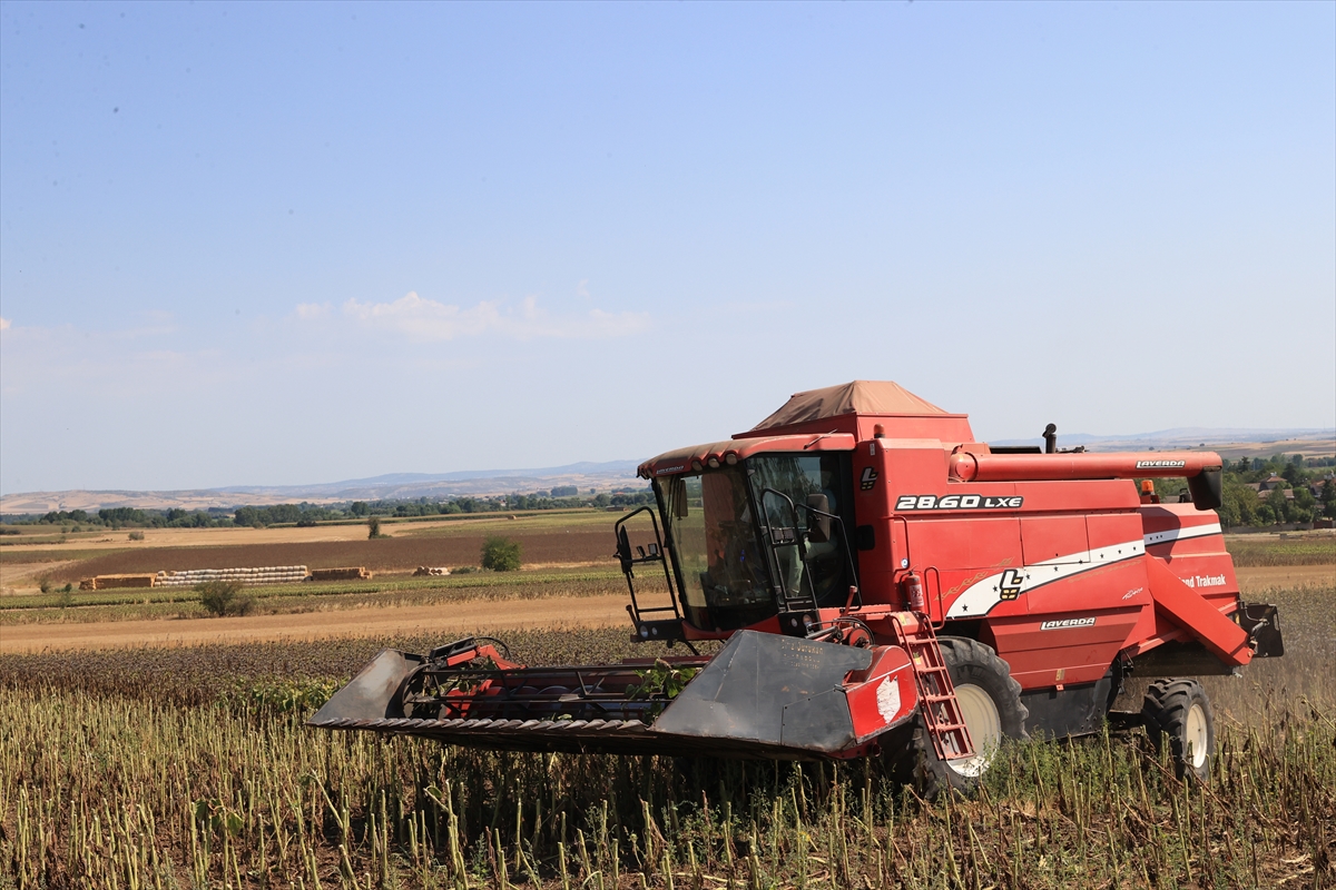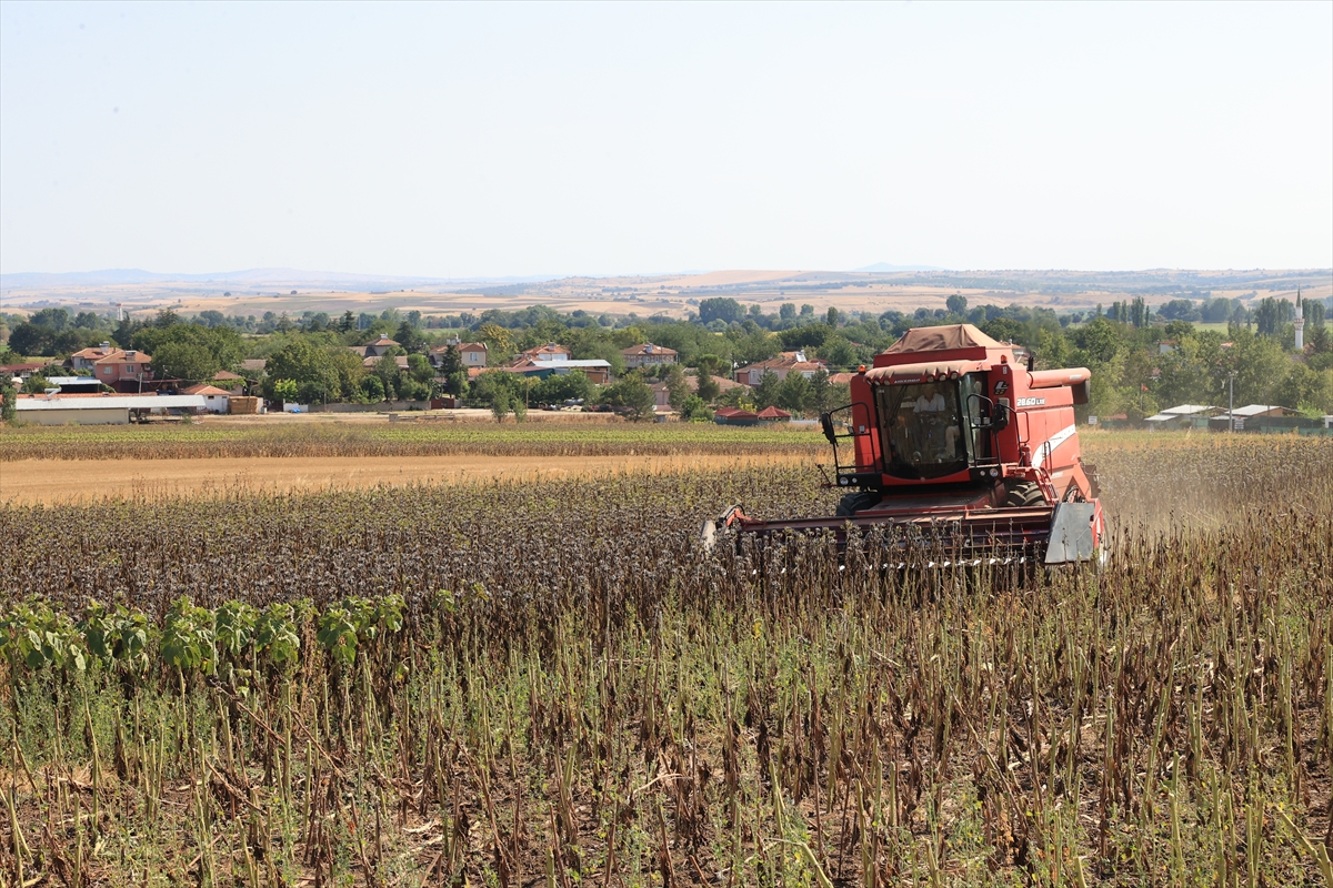 EDİRNE (AA) – Edirne'de ayçiçeği hasadı başladı.