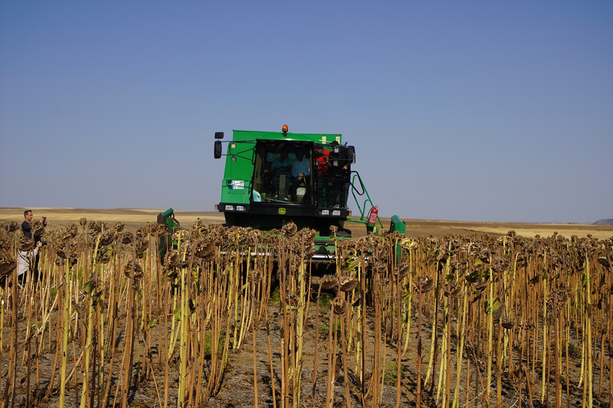 Gerekli olgunluğa erişen ayçiçekleri, düzenlenen törenle hasat edildi.