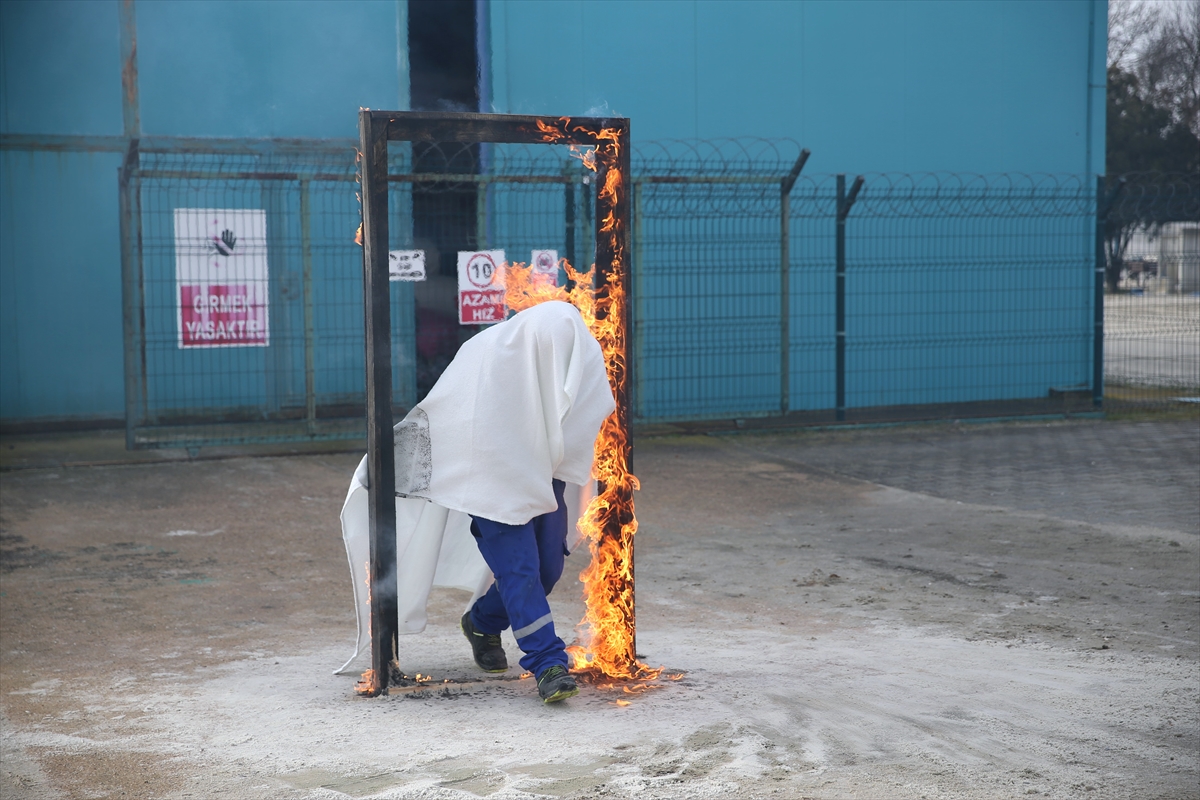 Yangın battaniyesini kullanan kişinin alevlerin içinden rahatlıkla geçebildiğini anlatan Koza, şunları kaydetti: