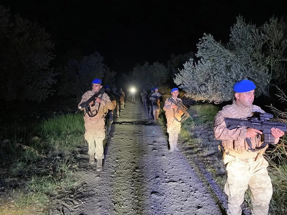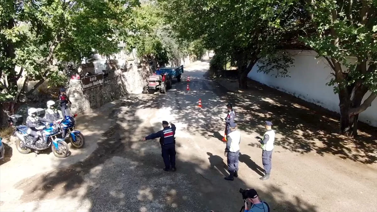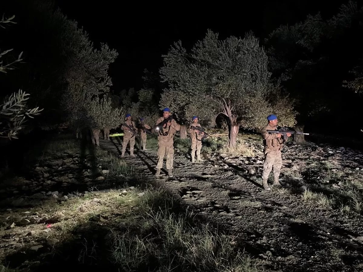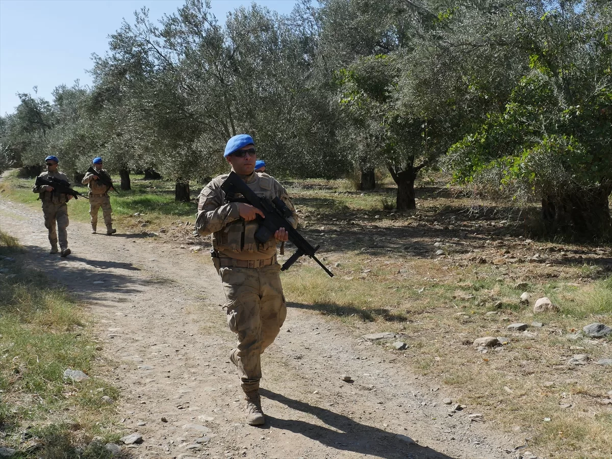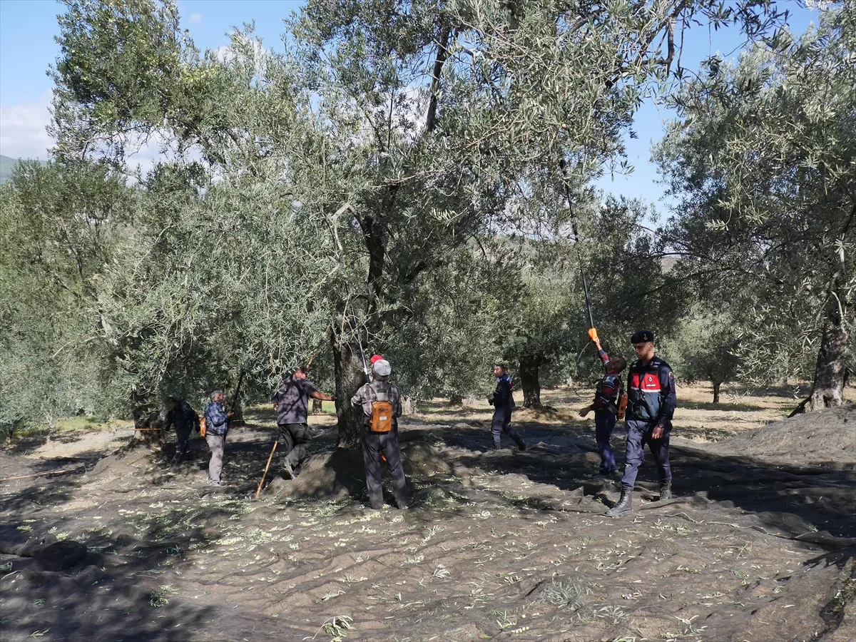 Dron yardımıyla havadan izlenen zeytin bahçelerinde jandarma ekipleri ayrıca yaya devriye geziyor.