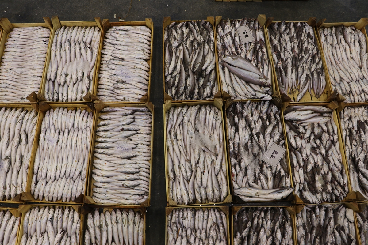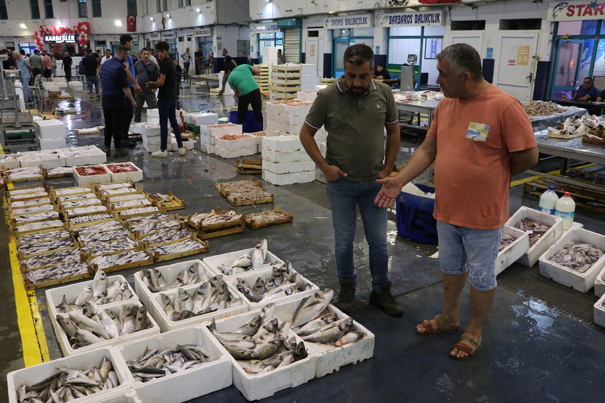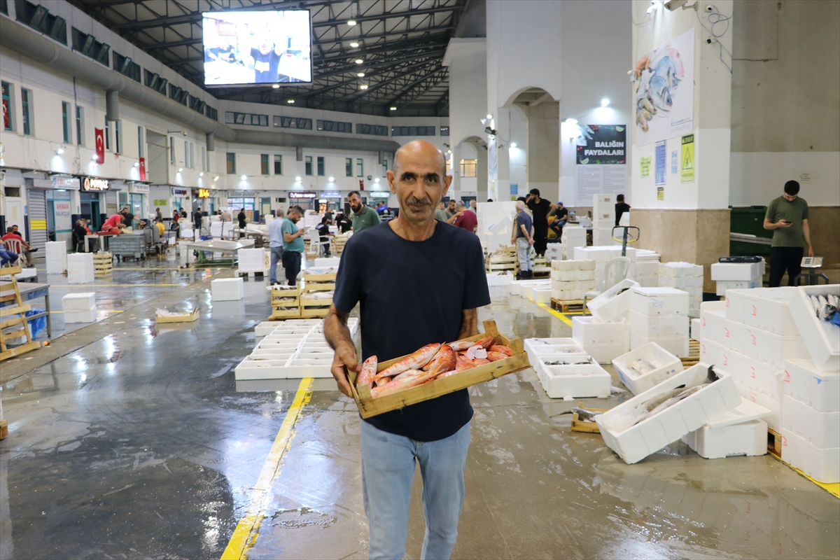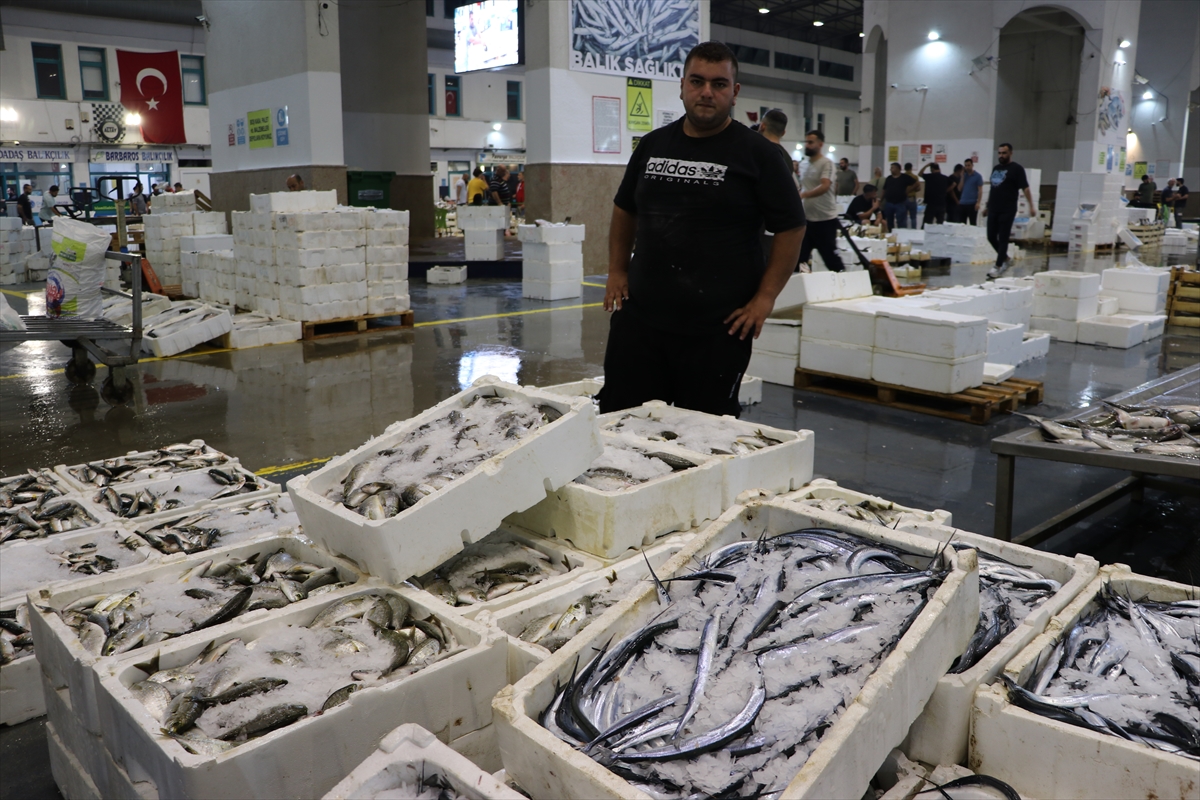 Balıkçılar, av sezonunun ilk gününde yakaladıkları balıkları satmak için İzmir'in Buca ilçesindeki İzmir Su Ürünleri Hali'ne getirdi.