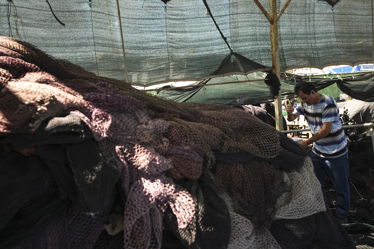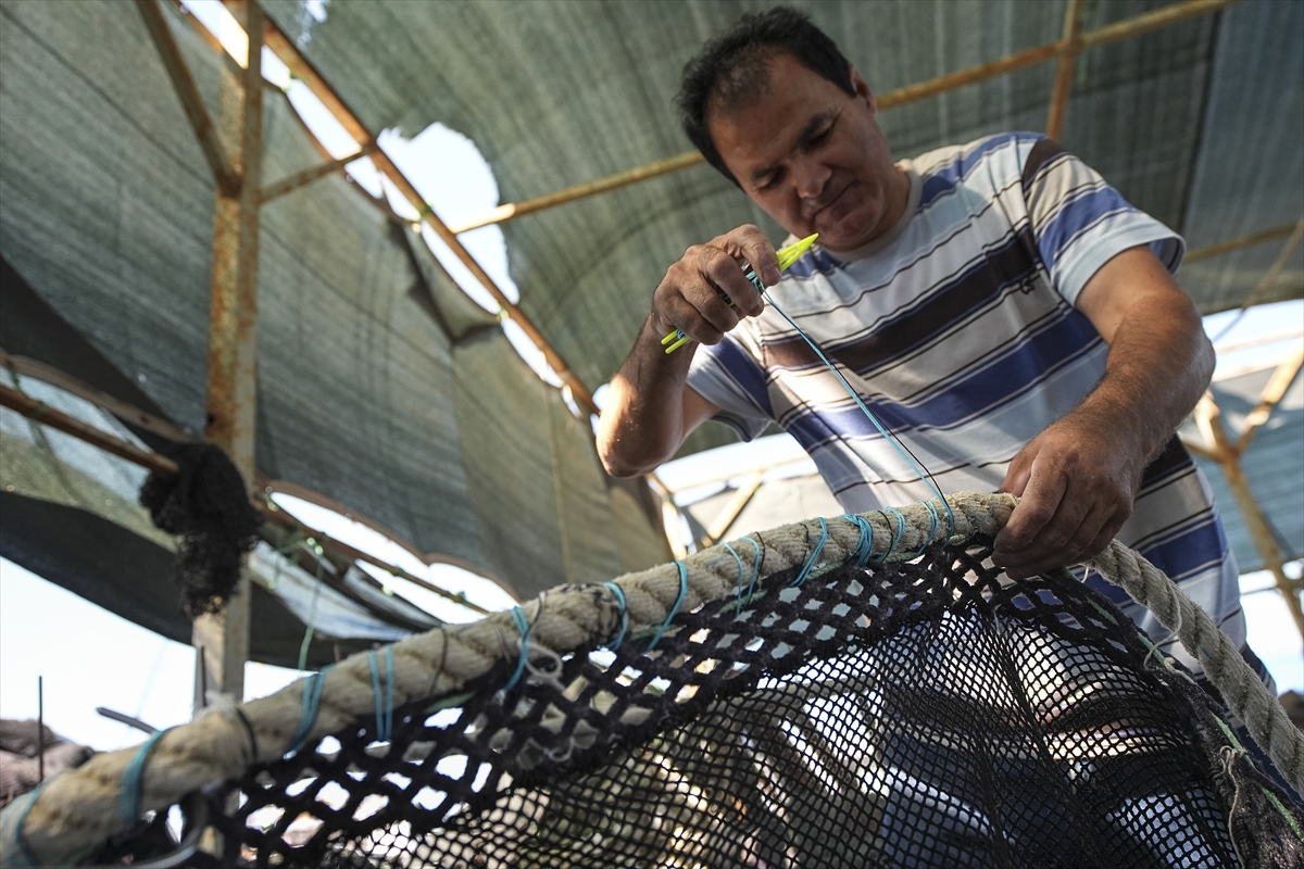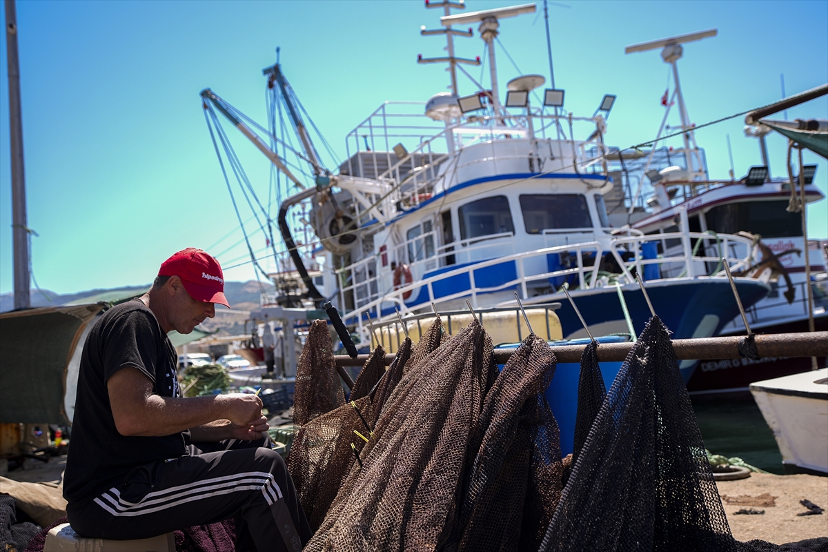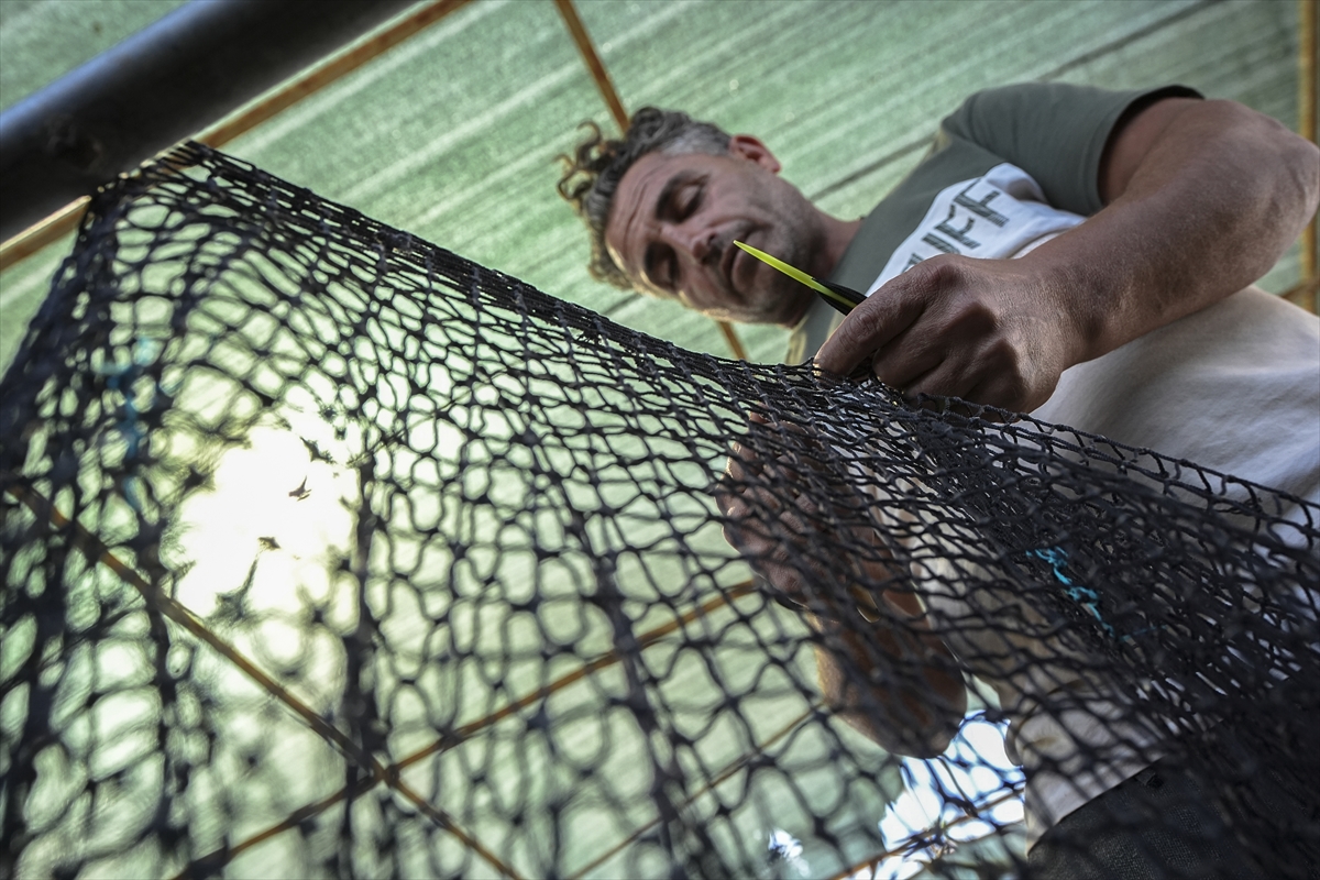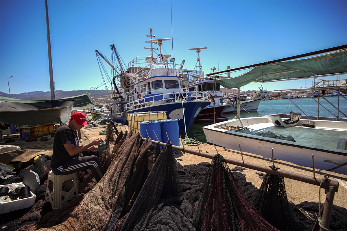 Yaklaşık 4 aylık dönemde bakım, tamirat ve boya işlemleri tamamlanan teknelerde ağların onarımı sürüyor. Günde yüzlerce metre ağ onaran balıkçılar, işlerini 1 Eylül öncesi bitirmeye çalışıyor.