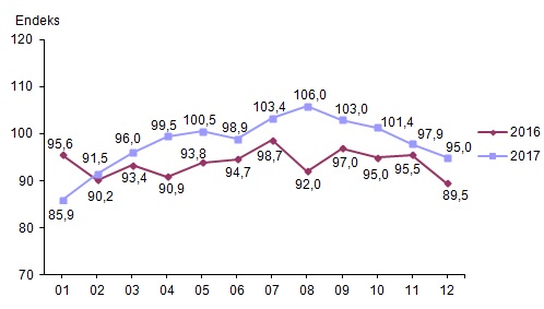 TÜİK verilerine göre ekonomik güven endeksi Aralık ayında bir önceki aya göre %3 oranında azalarak 97,9 değerinden 95 değerine düştü. Ekonomik güven endeksindeki düşüş, tüketici, reel kesim (imalat sanayi), hizmet ve inşaat sektörü güven endekslerindeki düşüşlerden kaynaklandı.