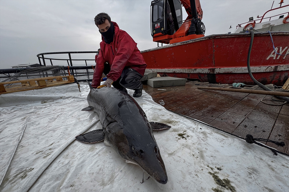 "Her sene bu operasyonlar kalite kontrolü, balığın hangi dönemde olduğunun tespiti ve havyarın olgunlaşma döneminin takibi için yapılıyor. Yapılan kontrollerde balıklarda havyarın 3. dönemde olduğunu görüyoruz. Hem çip hem de sond iğne (yumurta dedektörü) ve ultrasonla kontrolü yapılmakta. Balıklar bu bağlamda ikiye bölünüyor ve havyara hazır olan balıkları başka bir kafese aktarıp onları 4. döneme hazırlıyoruz. 4. dönemde balıklarımızın havyarı artık siyahlaşıyor ve havyar vermeye hazır oluyor."