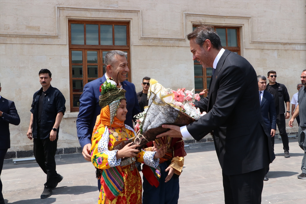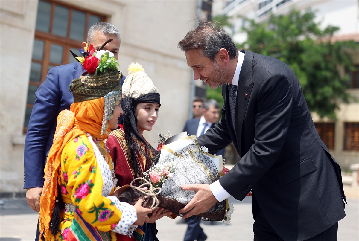 Türkiye-Suriye Doğal Gaz Boru Hattı'nın açılışı için kente gelen Bakan Bayraktar, Valiliği ziyaretinde, kendisini çiçekle karşılayan çocuklara oyuncak hediye etti.