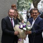 Yalova Belediyesi'ne de ziyarette bulunan Dönmez'e, Belediye Başkan Vekili Mustafa Tutuk tarafından şehirdeki çalışmalar hakkında bilgi verildi.