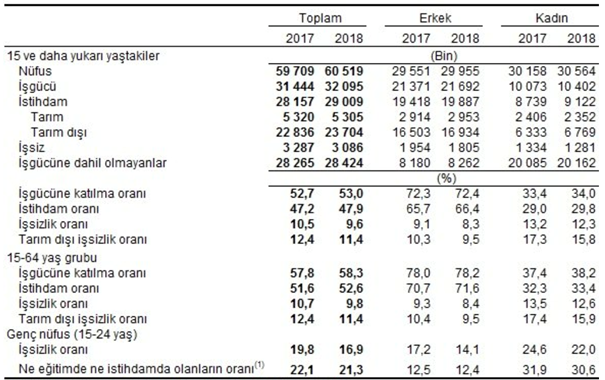 Dünya ülkeleriyle karşılaştırma anlamında en uygun veri olarak açıklanan 15-64 yaş grubu tarım dışı işsizlik oranı ise yüzde 11,4 olarak gerçekleşti.