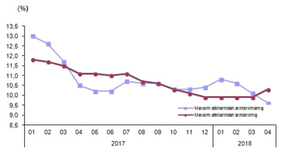 Grafik: Mevsim etkilerinden arındırılmış işsizlik oranı, NİSAN 2018