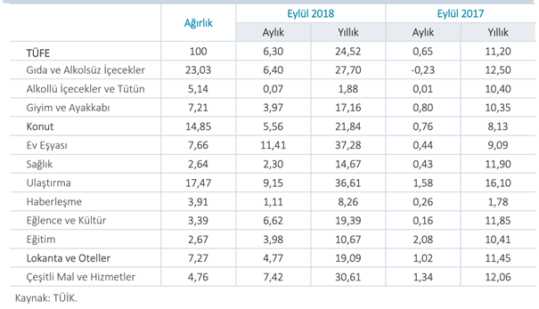 Tablo: Eylül Ayı Enflasyonu Bileşenleri