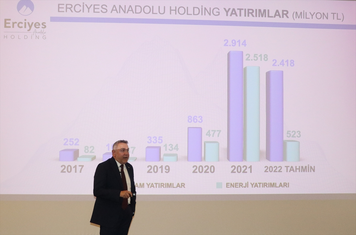 Erciyes Anadolu Holding'in Kayseri Organize Sanayi Bölgesi'ndeki holding binasında 2021 yılı finansal sonuçları ve gelecek döneme ait hedef ve stratejilerine ilişkin basın toplantısı düzenlendi.