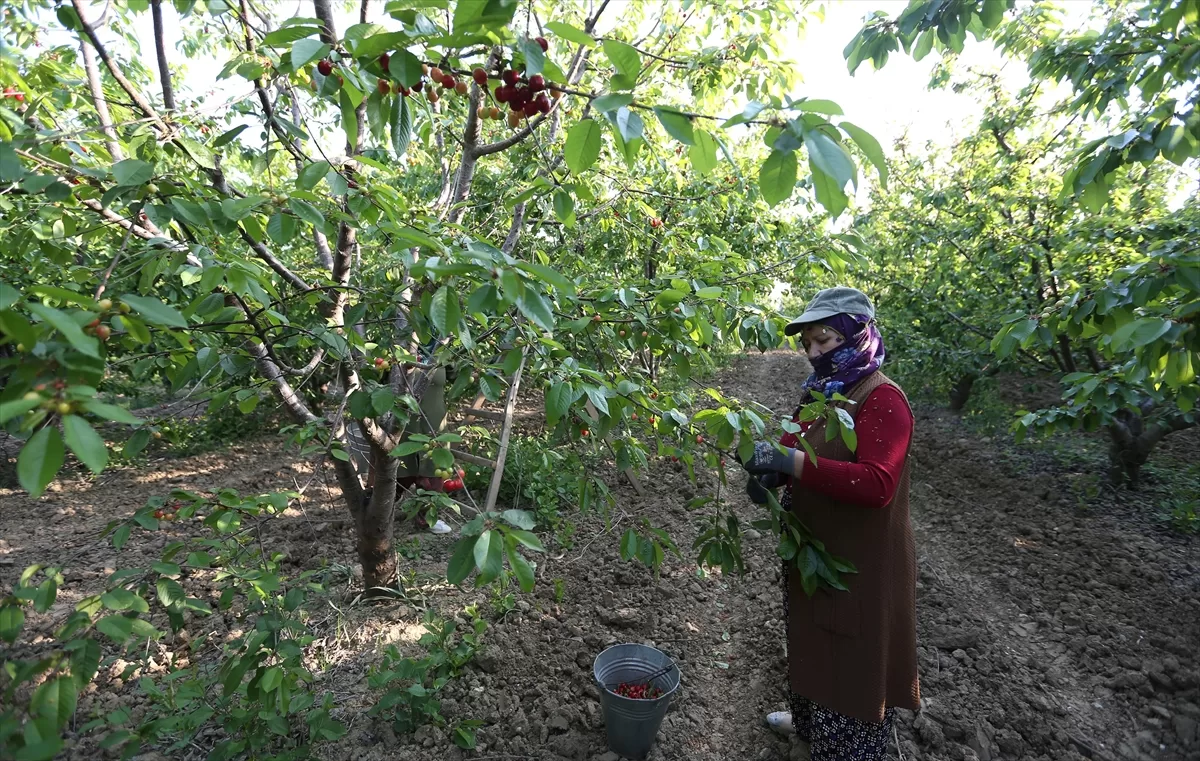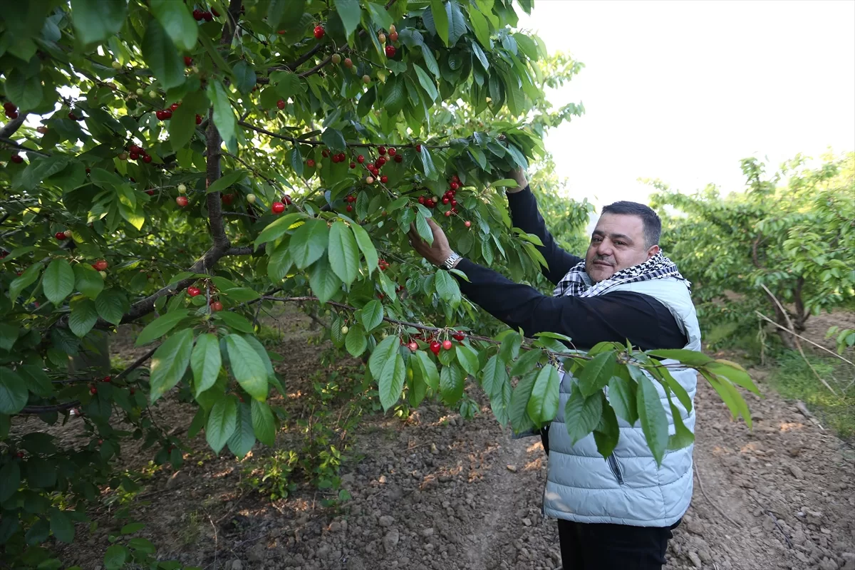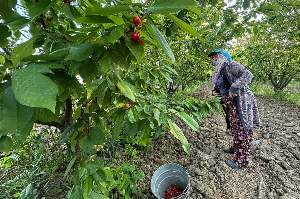 Aşağı Çobanisa Mahallesi'ndeki bahçesinde olgunlaşan "Cristobalina" cinsi kirazları hasat eden üretici Mehmet Bülbül, yaklaşık 300 kilogram ürünü alım merkezine getirdi.
