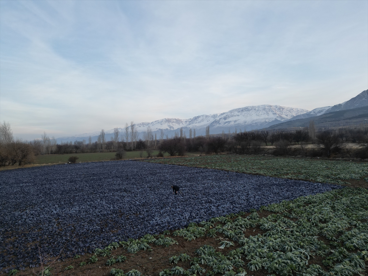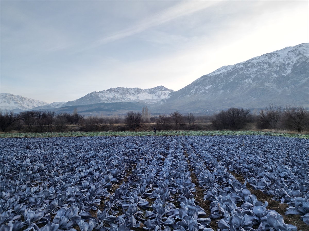 İl Tarım ve Orman Müdürü Alper Koçaker, AA muhabirine, aralık ayının sonlarında mor lahana ekili tarlada hasadın sürdüğünü söyledi.