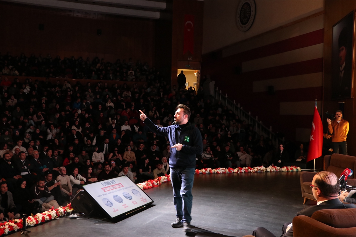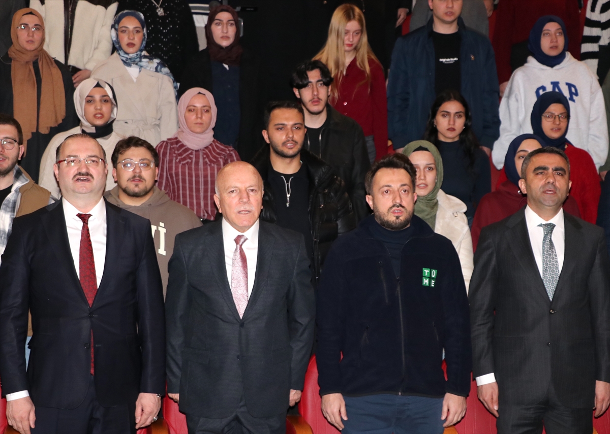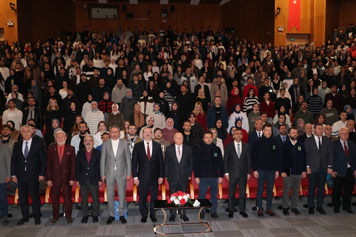 Atatürk Üniversitesi 15 Temmuz Milli İrade Salonu'nda moderatörlüğünü Atatürk Üniversitesi Rektörü Prof. Dr. Ahmet Hacımüftüoğlu'nun yaptığı konferans, saygı duruşunda bulunulması ve İstiklal Marşı'nın okunmasıyla başladı.
