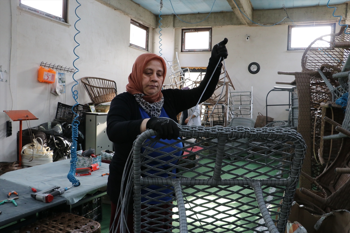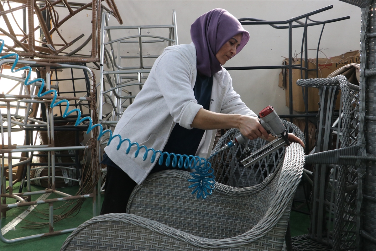 Salgın sürecini avantaja çevirdiğini belirten Birinci, "Daha önce tekstil sektöründe modelist olarak çalışıyordum. 6 yıl boyunca insanları giydirdim, bahçe mobilyaları sektörüne girdikten sonra koltukları giydirmeye devam ediyorum. KOSGEB'den aldığımız destekle büküm makinelerimizi aldık. KOSGEB desteğiyle üretimimize hız kattık. Kaynaklı imalat, eşim zaten yapıyordu. Sonrasında tekstil kısmıyla öncelikle minderleri yapmaya başladık. Daha sonra rattan el örgüsü kısmına da başladık." diye konuştu.