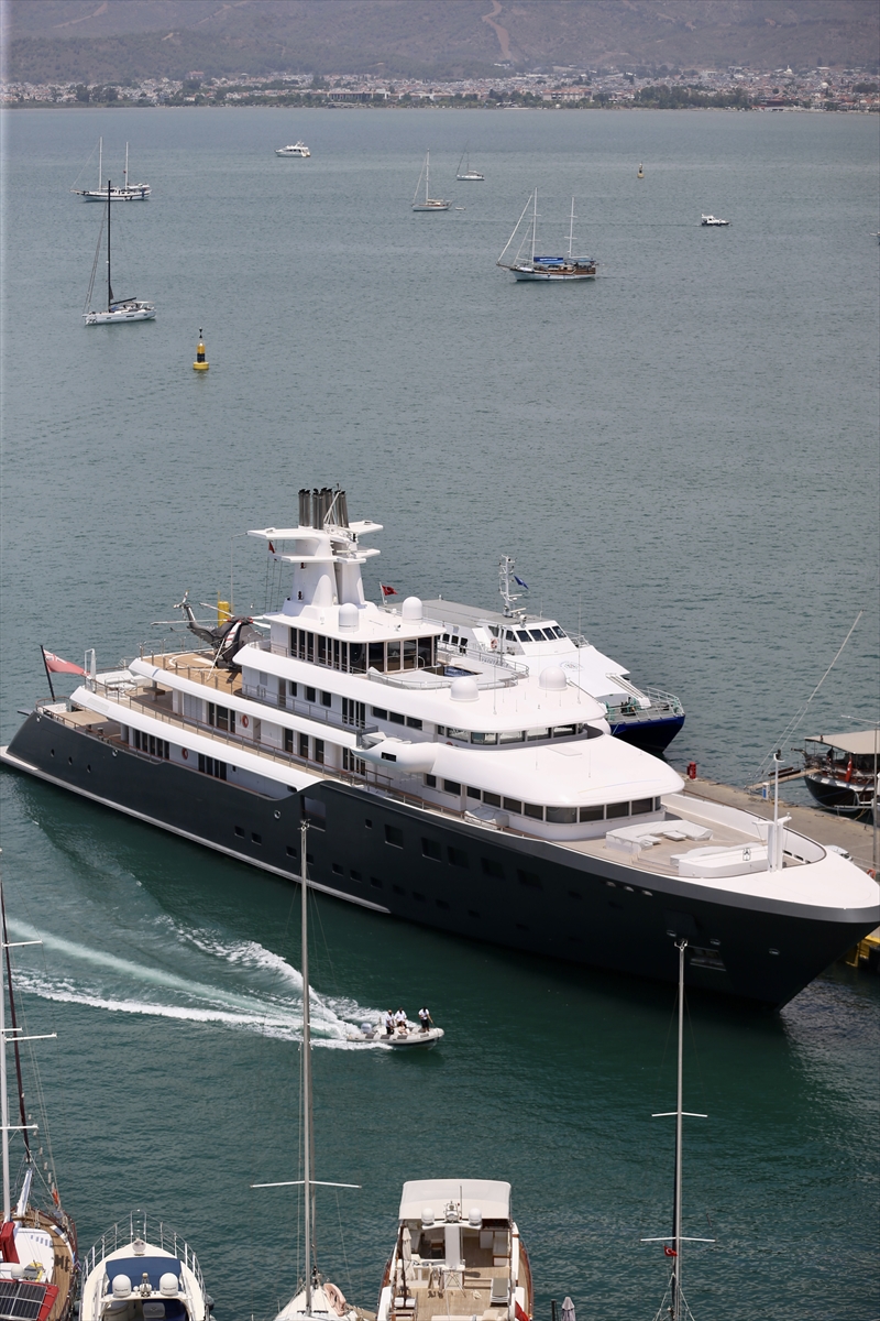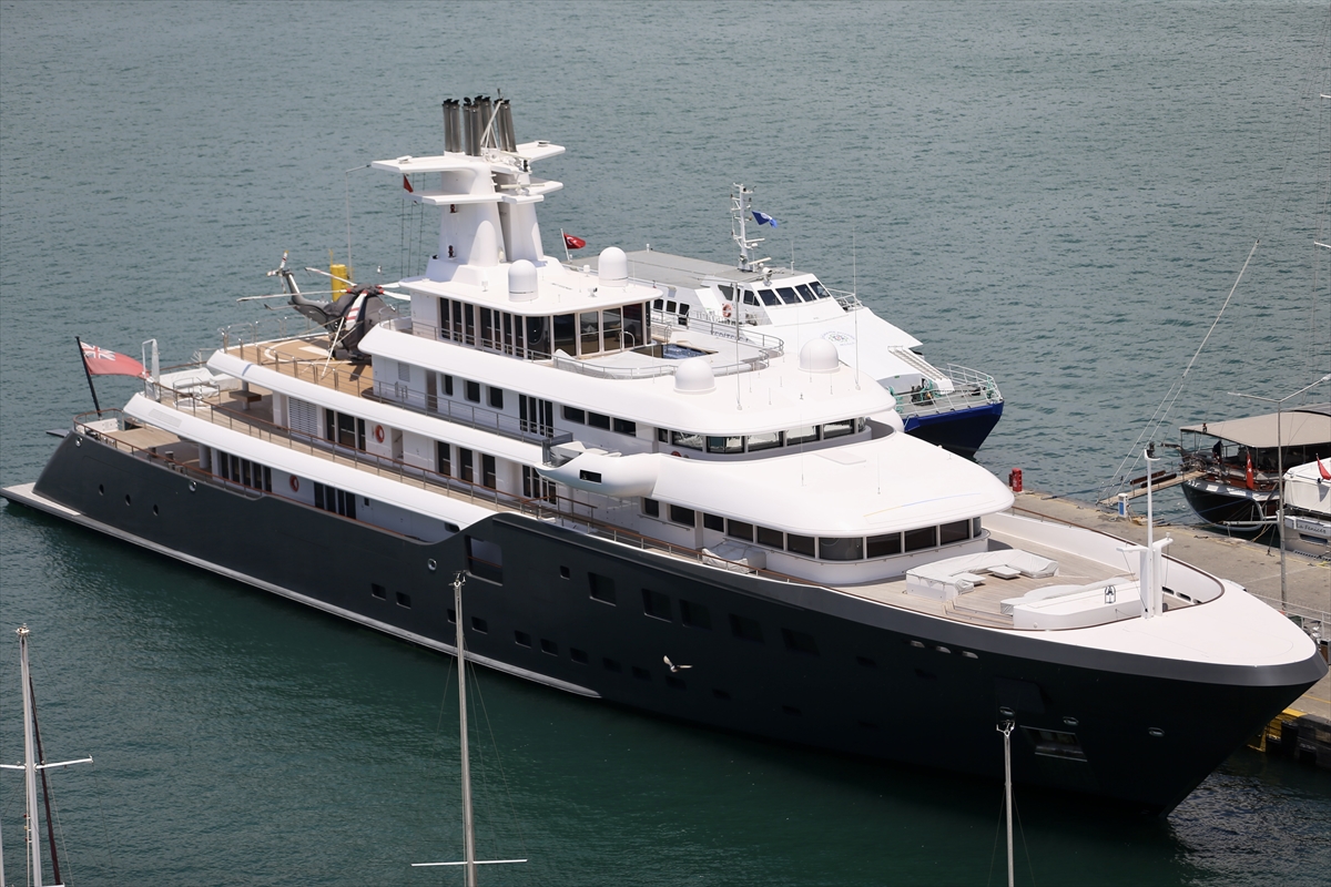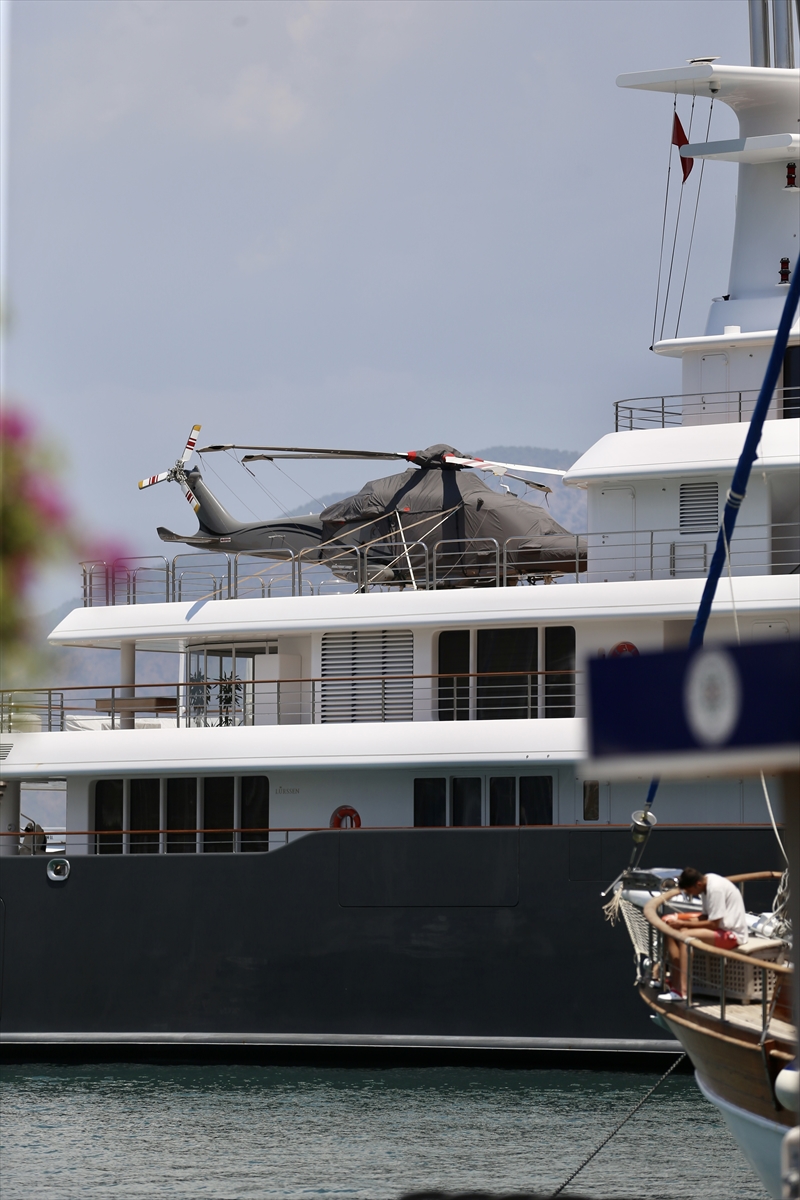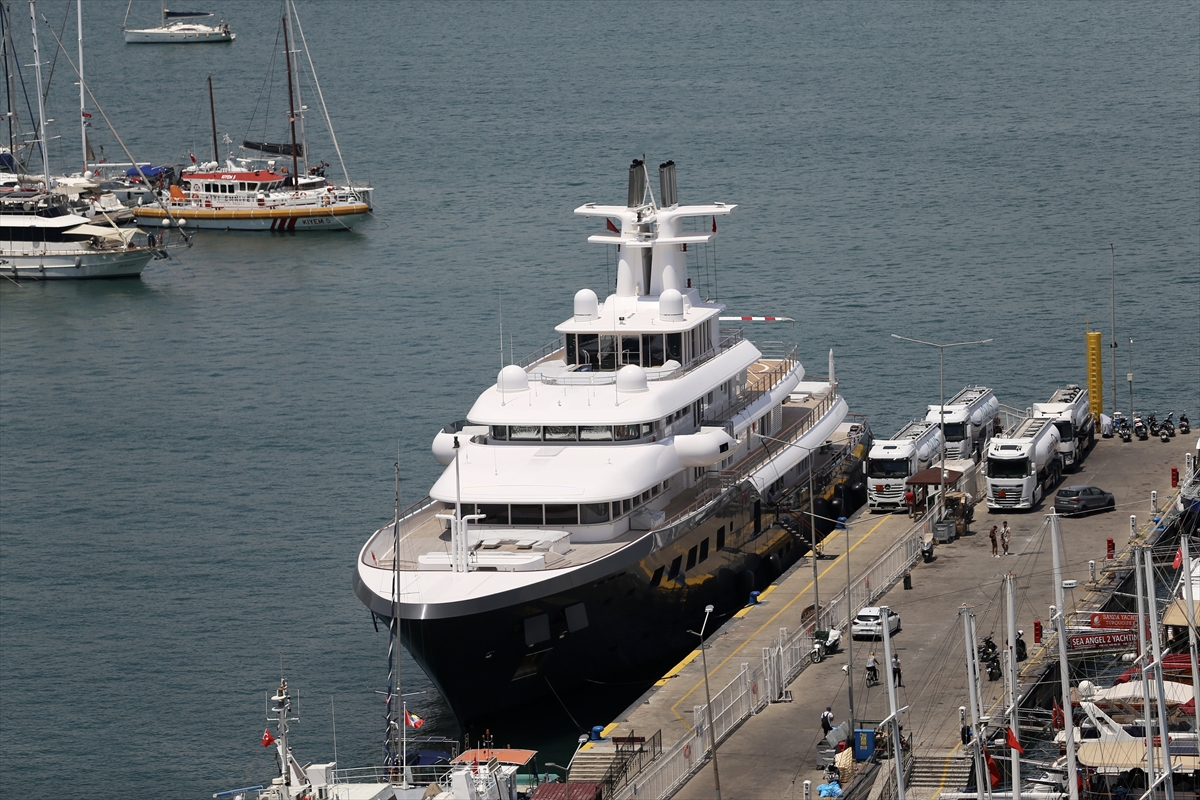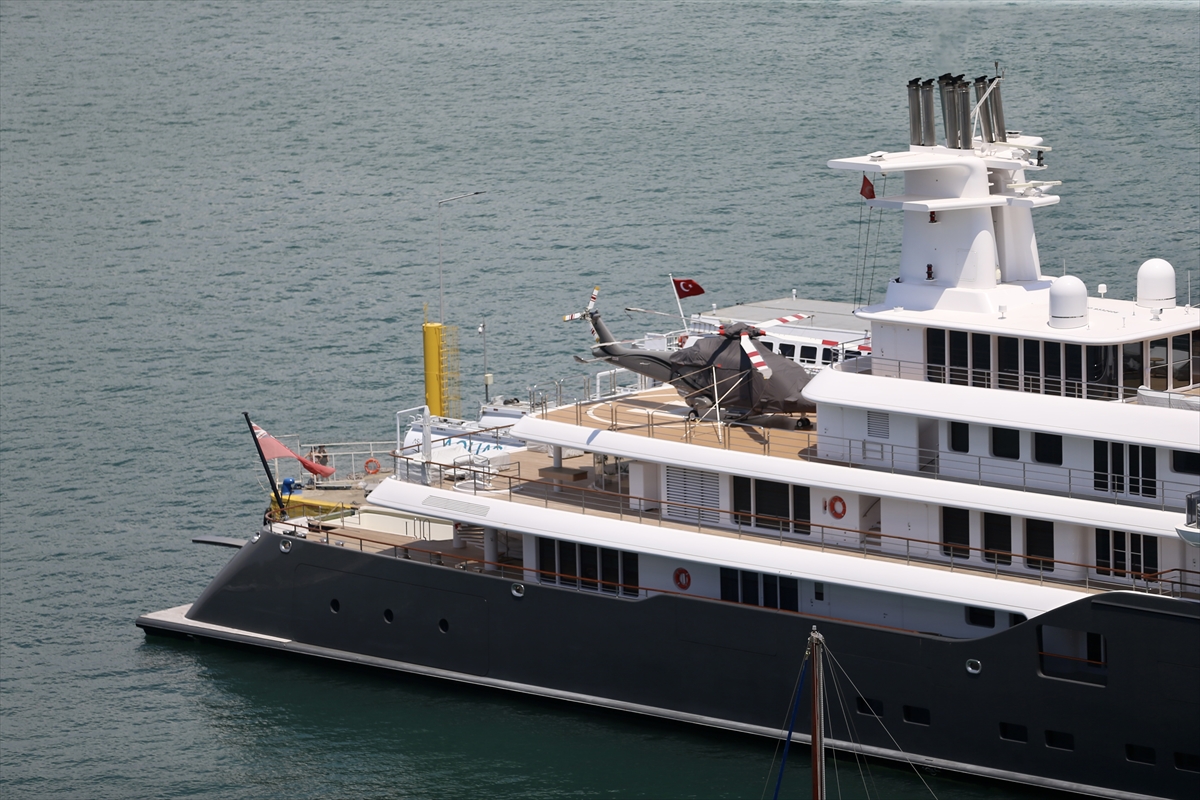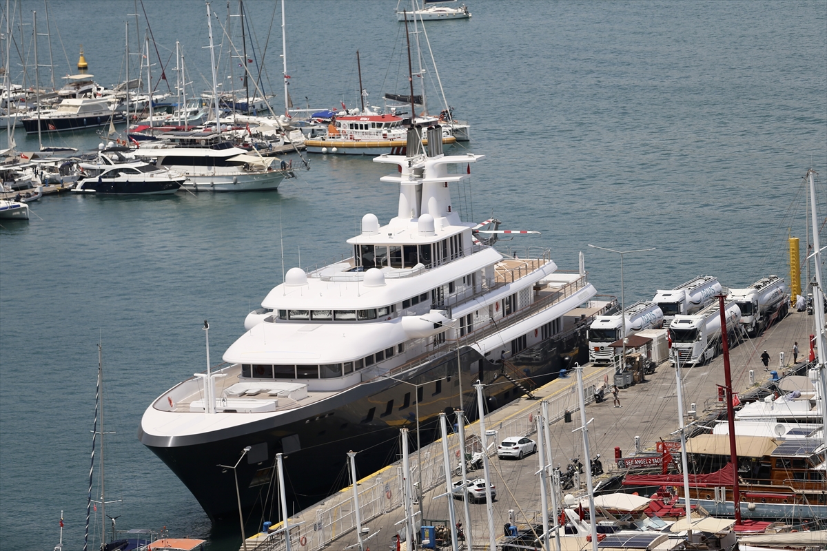 Üzerinde helikopterin de bulunduğu gözlenen yat, yakıt ikmalinin ardından limandan ayrılacak.