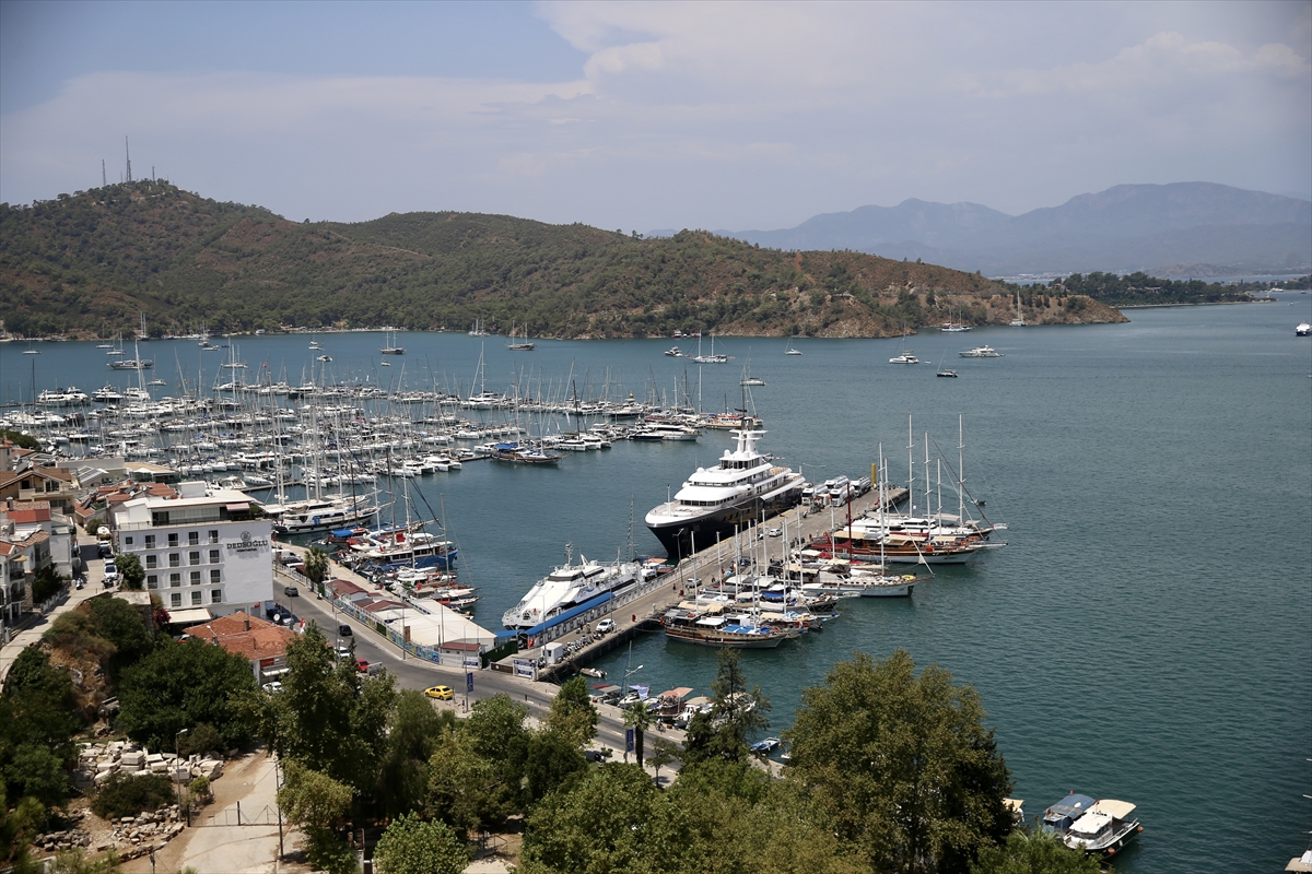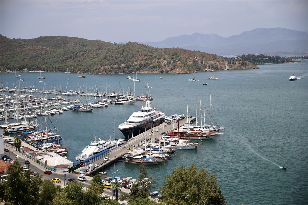 Fethiye Limanı iskelesine bağlanan 90 metre uzunluğundaki yata, tankerle Aliağa Rafinerisi'nden getirilen akaryakıt, karadan ikmal edildi.