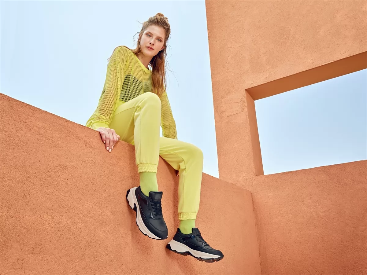 Şirketten yapılan açıklamaya göre, siyah, beyaz, bej, gri ve taba renklerin öne çıktığı kadın koleksiyonunda, kalın taban ve renkli şerit detayları yer alıyor. Skinny jean, ceket, etek, gömlek ve elbiselerle uyum yakalayan sneakerlar, tüm kombinlerin eşlikçisi oluyor.
