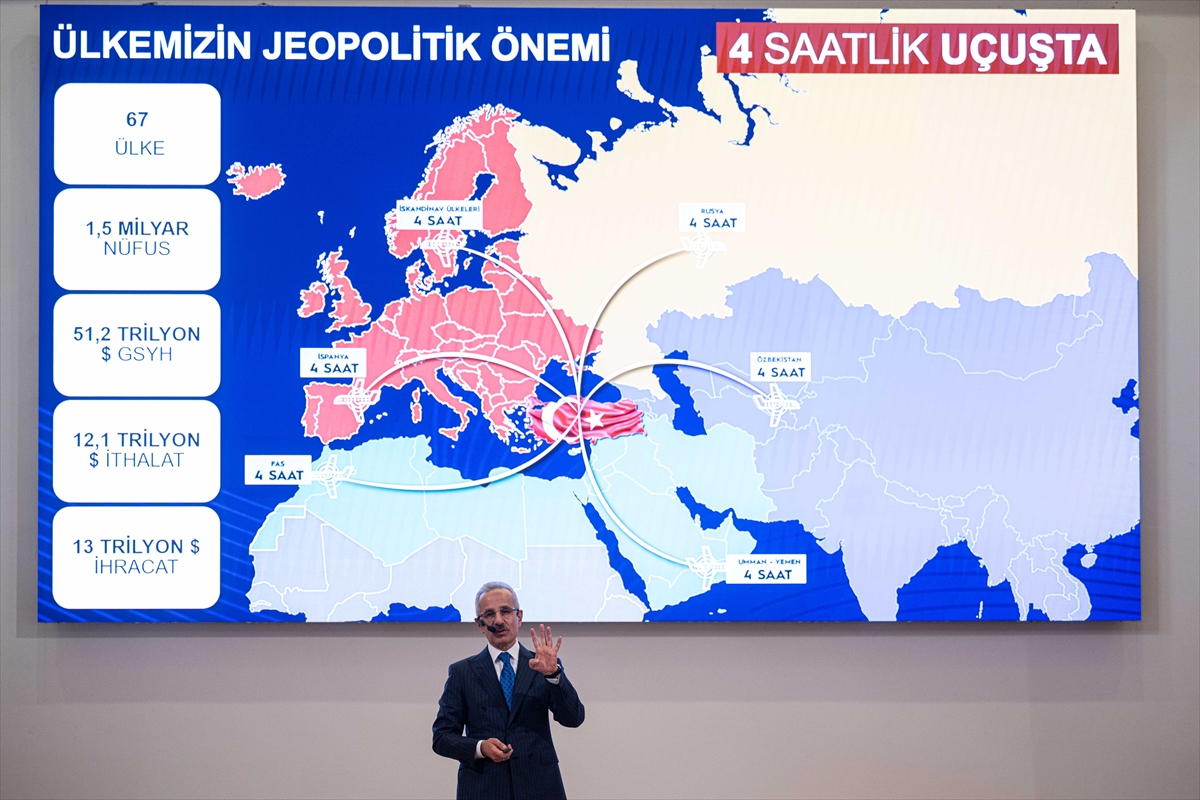 Türkiye'nin, coğrafi konumunun önemine işaret eden Uraloğlu, ülkeden 4 saatlik uçuşla 67 ülkeye ulaşıldığını söyledi.
