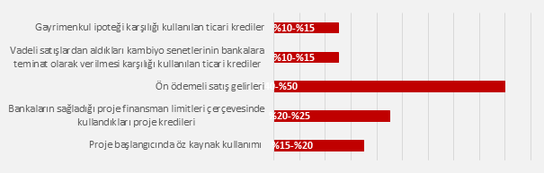 Yukarıdaki dağılımda görüldüğü gibi, satışlardan sağlanan gelir, geliştiricilerin en büyük finansman aracı olarak ortaya çıkıyor. Diğer ana finansman kaynağı ise bankacılık sistemidir.