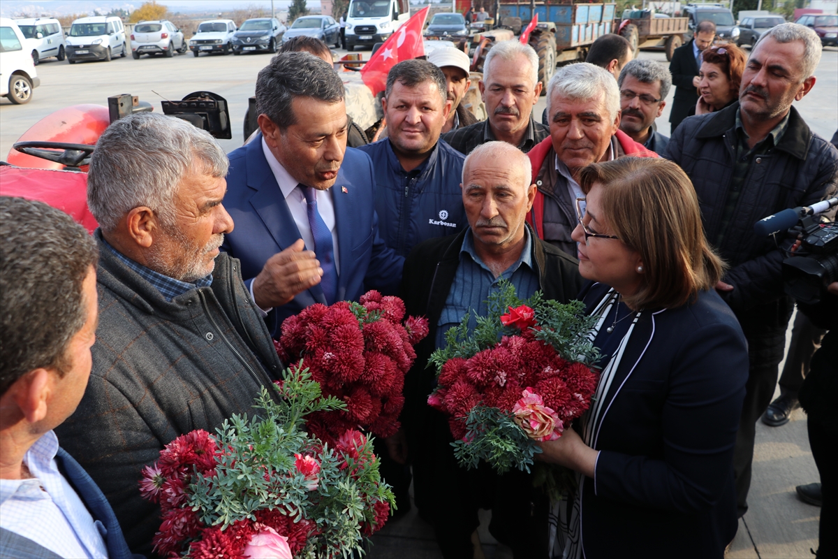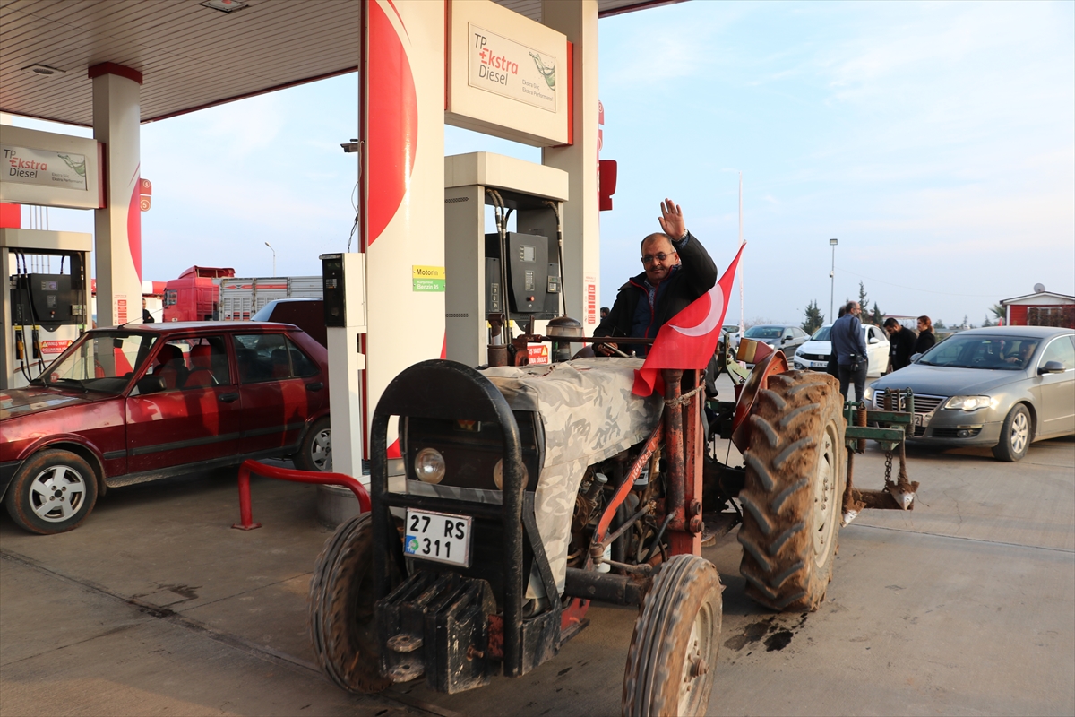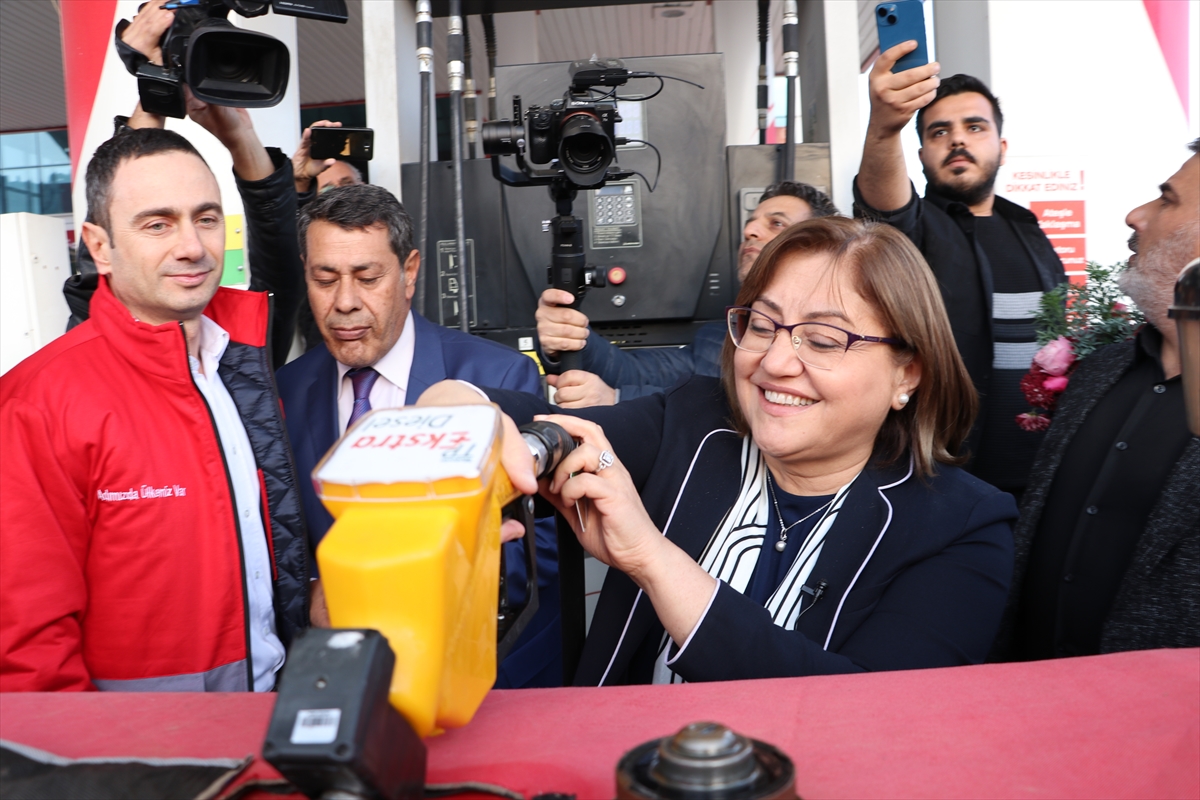 Büyükşehir Belediye Başkanı Fatma Şahin, Oğuzeli ilçesindeki bir akaryakıt istasyonunda mazot alan çiftçilerle bir araya geldi.