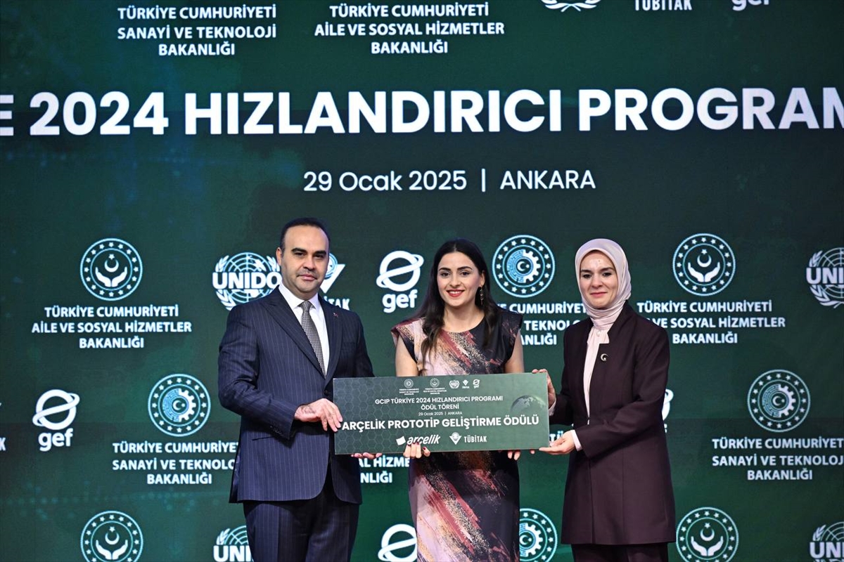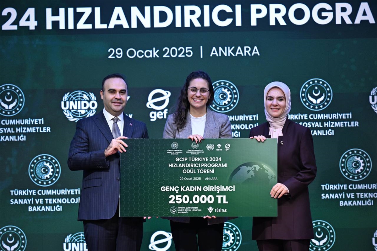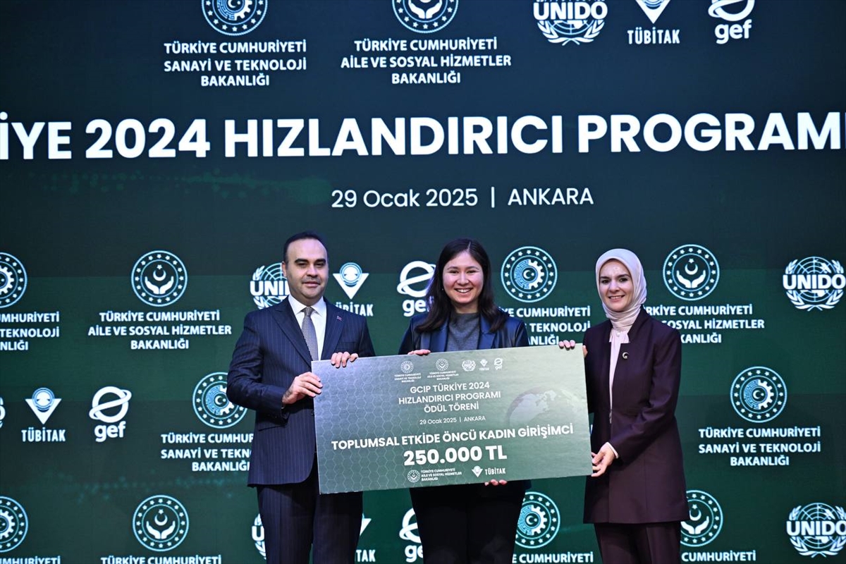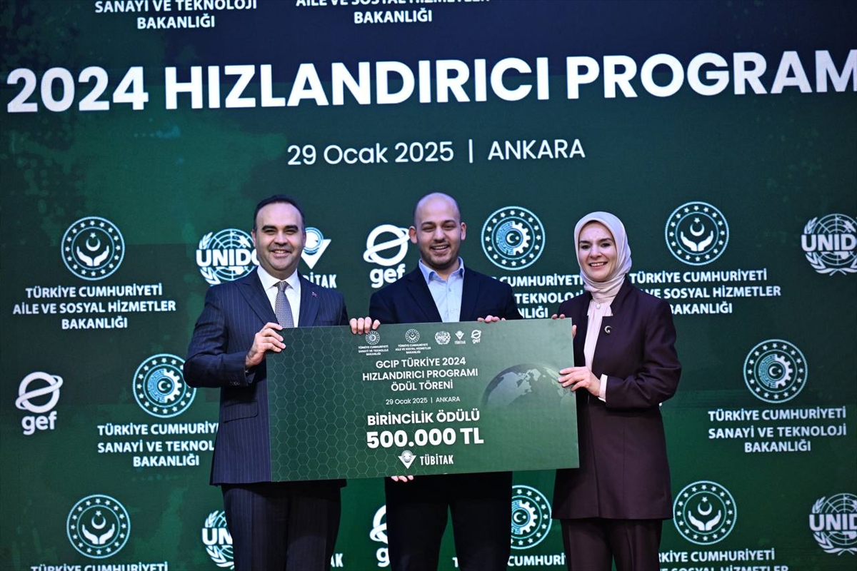 Birleşmiş Milletler Sınai Kalkınma Teşkilatı (UNIDO) ve Küresel Çevre Fonu (GEF) işbirliğiyle yürütülen GCIP 2024 Türkiye Hızlandırıcısı Ödül Töreni, Sanayi ve Teknoloji Bakanı Mehmet Fatih Kacır ile Aile ve Sosyal Hizmetler Bakanı Mahinur Özdemir Göktaş'ın katılımıyla TÜBİTAK Başkanlık Feza Gürsey Salonu'nda gerçekleştirildi.