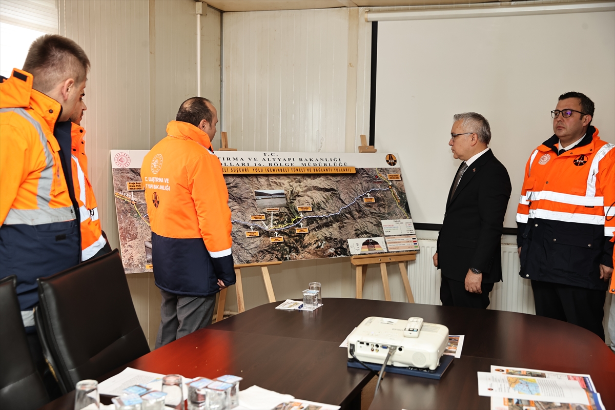 Valilikten yapılan yazılı açıklamaya göre, Geminbeli Tüneli şantiyesini ziyaret eden Şimşek, çalışmalar hakkında yetkililerden bilgi aldı.