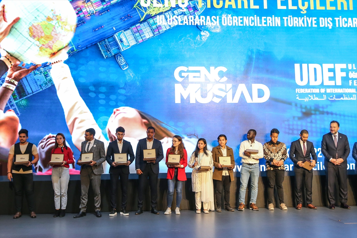 Bugün yurt dışına açılmak çok daha kolay geçmişe nazaran. Ama bizim kültürümüzü ve dilimizi bilen, bizi tanıyan arkadaşlarımızla, aslında bir anlamda fahri ticaret ataşelerimizle, o kadar büyük kapıları açabiliriz, o kadar yüksek rakamlara ulaşabiliriz ki amacımız da bu zaten. Yani dolayısıyla biz Ticaret Bakanlığı olarak Genç MÜSİAD'ımızın 6 yıldır, 6 şehirde yaptığı bu projeyi sonuna kadar destekliyoruz."