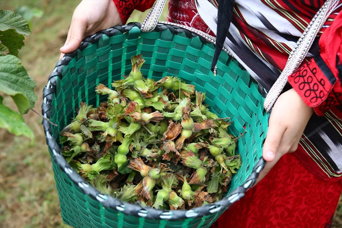 Bellerine sepet takan katılımcılar, bir süre fındık toplayarak sembolik olarak fındık hasadını başlattı.