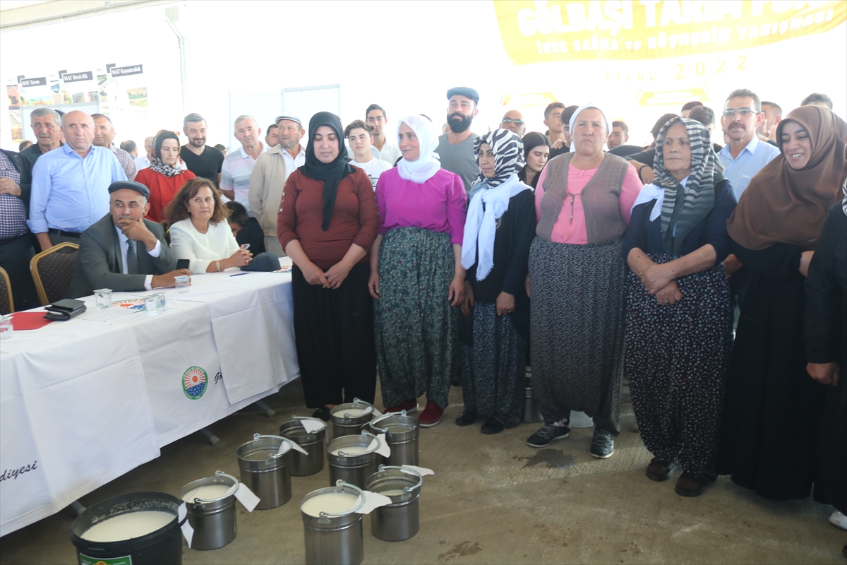 Süt sağım yarışmasına, Gölbaşı'nın çeşitli mahallelerinden 10 üretici, kurdelelerle süslendikleri hayvanlarıyla katıldı.