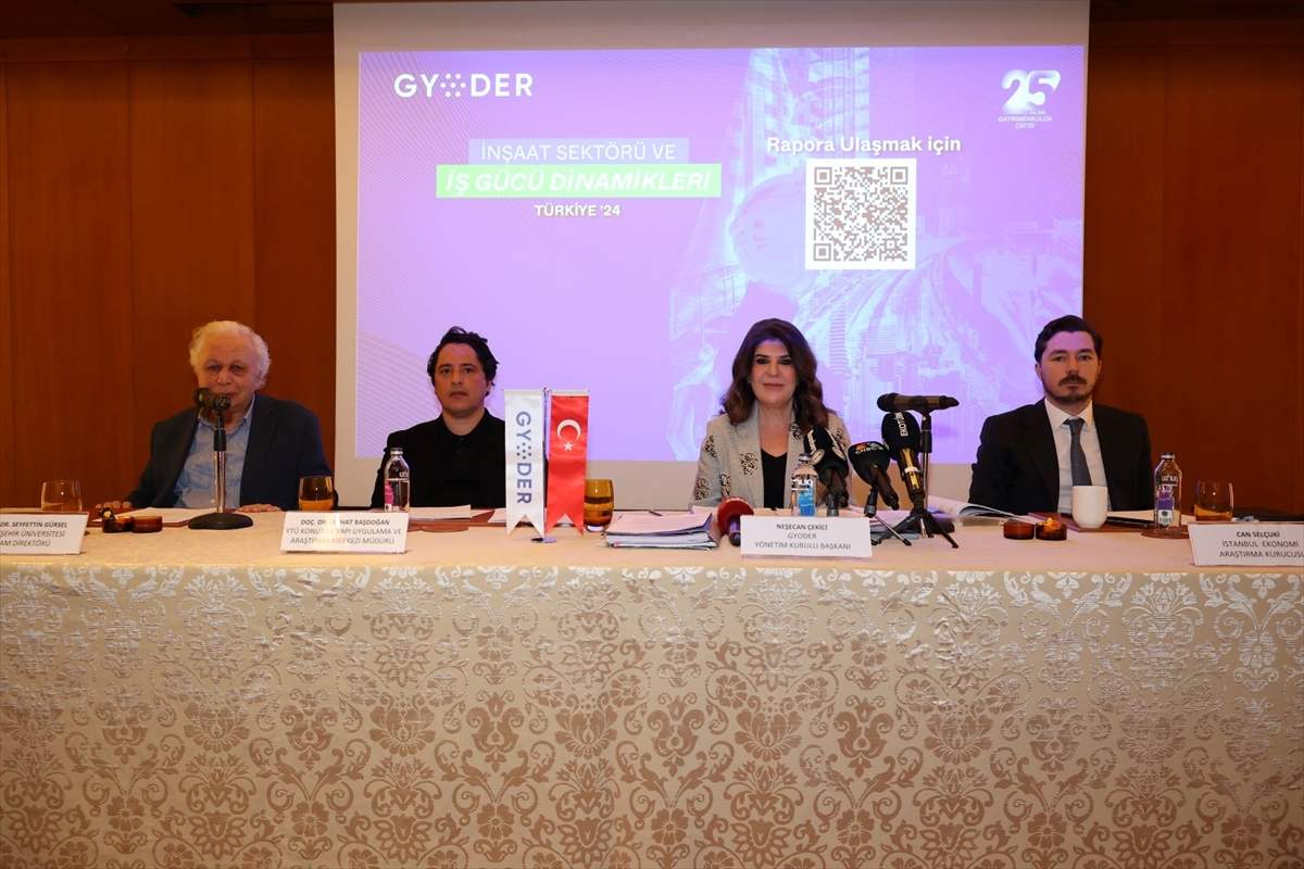 GYODER tarafından Bahçeşehir Üniversitesi Ekonomik ve Sosyal Araştırmalar Merkezine (BETAM) yaptırılan "İnşaat Sektörü ve İş Gücü Dinamikleri: Türkiye'24" araştırmasının sonuçları ve çözüm önerileri, GYODER Başkanı Neşecan Çekici, YTÜ Konut ve Yapı Uygulama ve Araştırma Merkezi Müdürü Doç. Dr. Serhat Başdoğan, Bahçeşehir Üniversitesi BETAM Direktörü Prof. Dr. Seyfettin Gürsel ve İstanbul Ekonomi Araştırma Genel Müdürü ve Kurucusu Can Selçuki tarafından İstanbul'da bir otelde düzenlenen basın toplantısıyla duyuruldu.