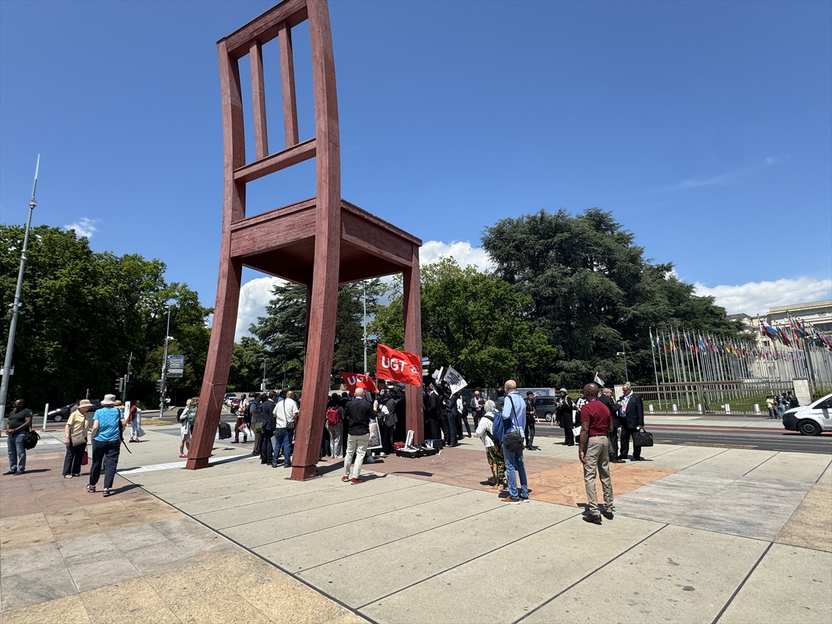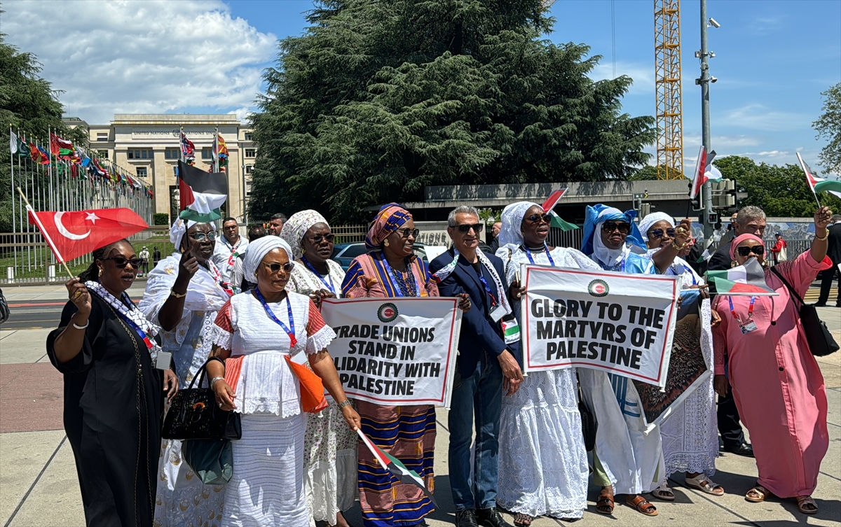 CENEVRE (AA) – Hak İşçi Sendikaları Konfederasyonu (HAK-İŞ), Birleşmiş Milletler (BM) Cenevre Ofisi önünde Filistin'e destek gösterisi organize etti.
